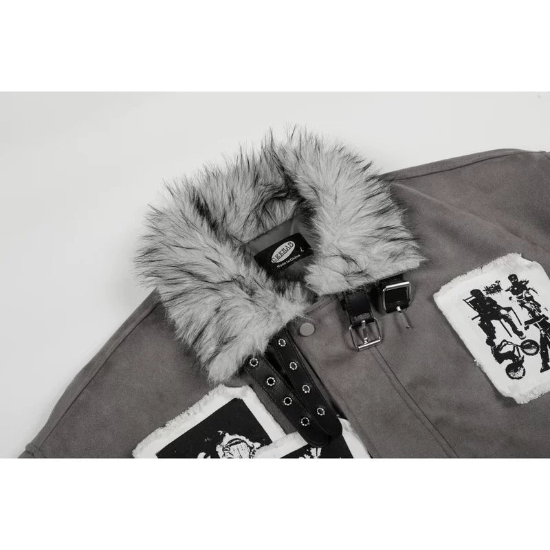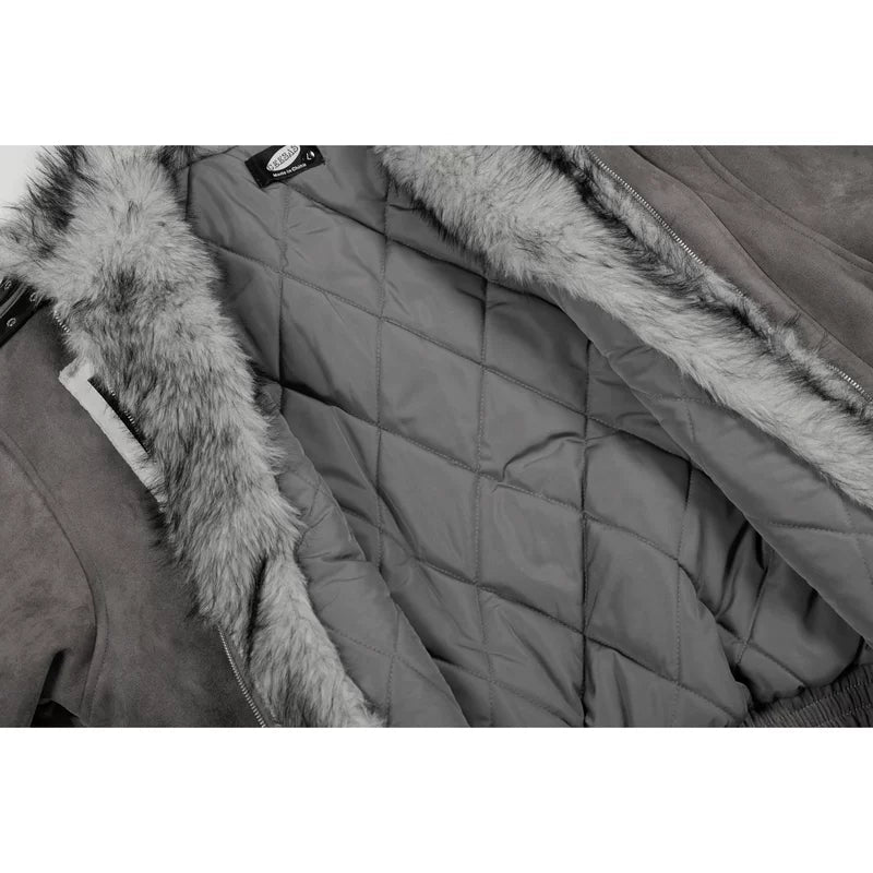 سترة بومبر مزينة بياقة من الفرو الصناعي
