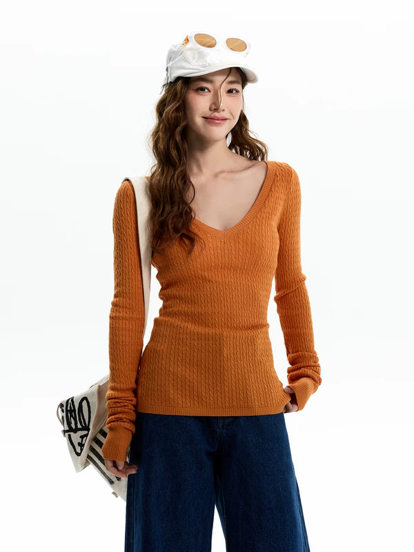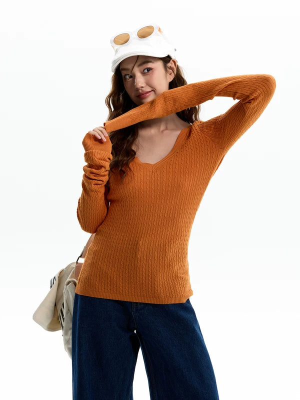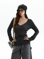 تي شيرت ضيق ذو ياقة على شكل حرف V مع تجاعيد