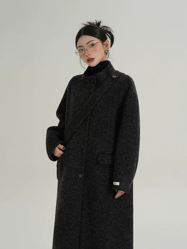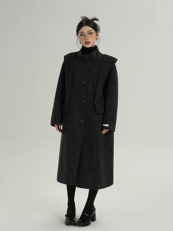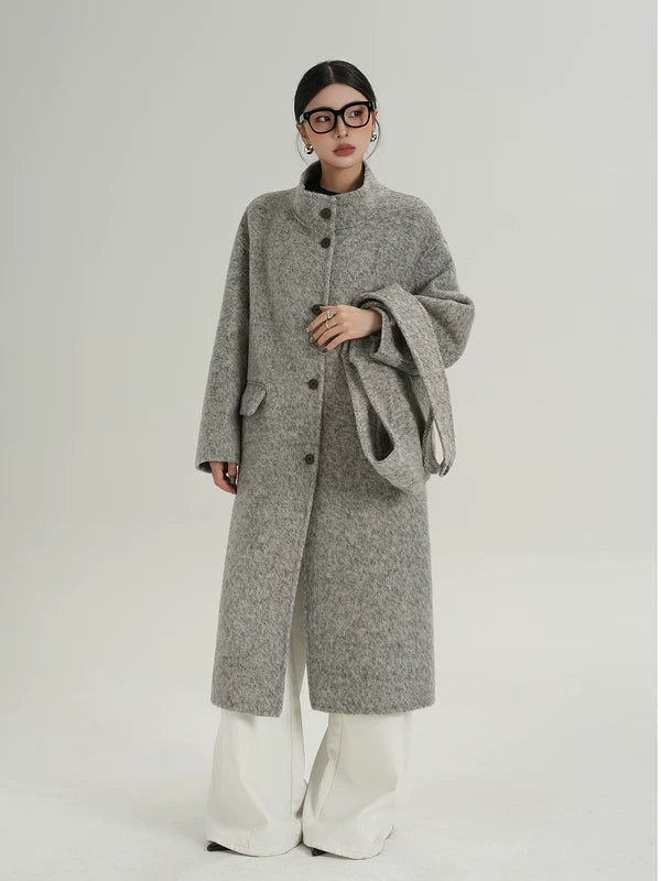 معطف طويل بياقة عالية من الصوف مع حقيبة