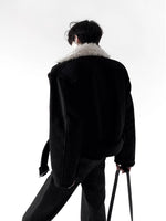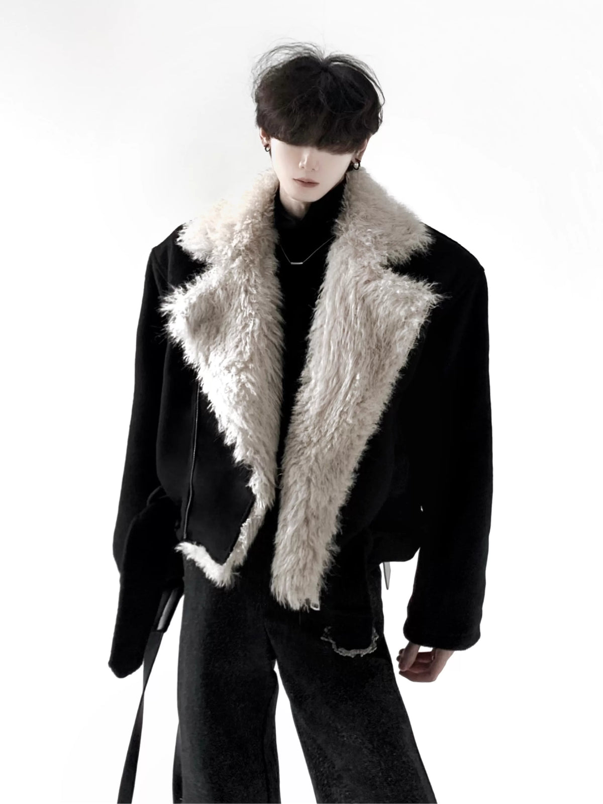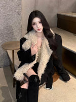 معطف من الفرو الصناعي مع ياقة فرو كبيرة