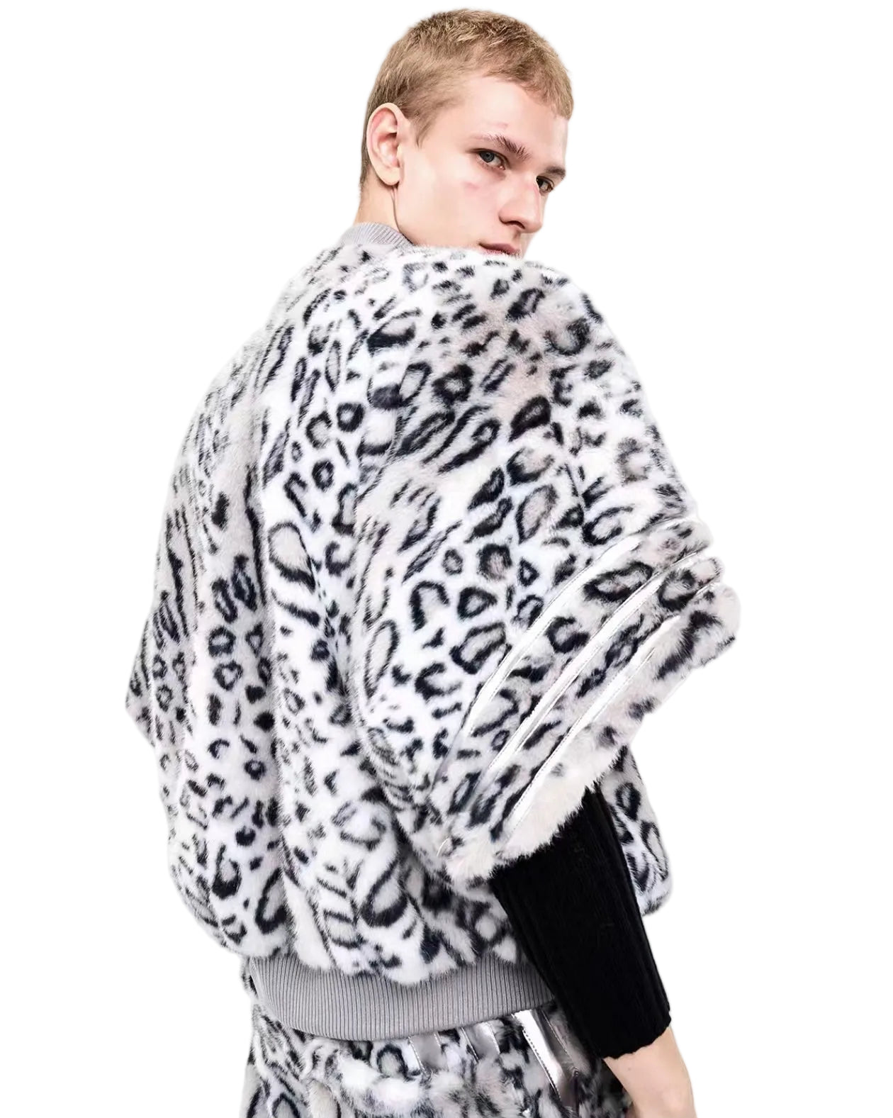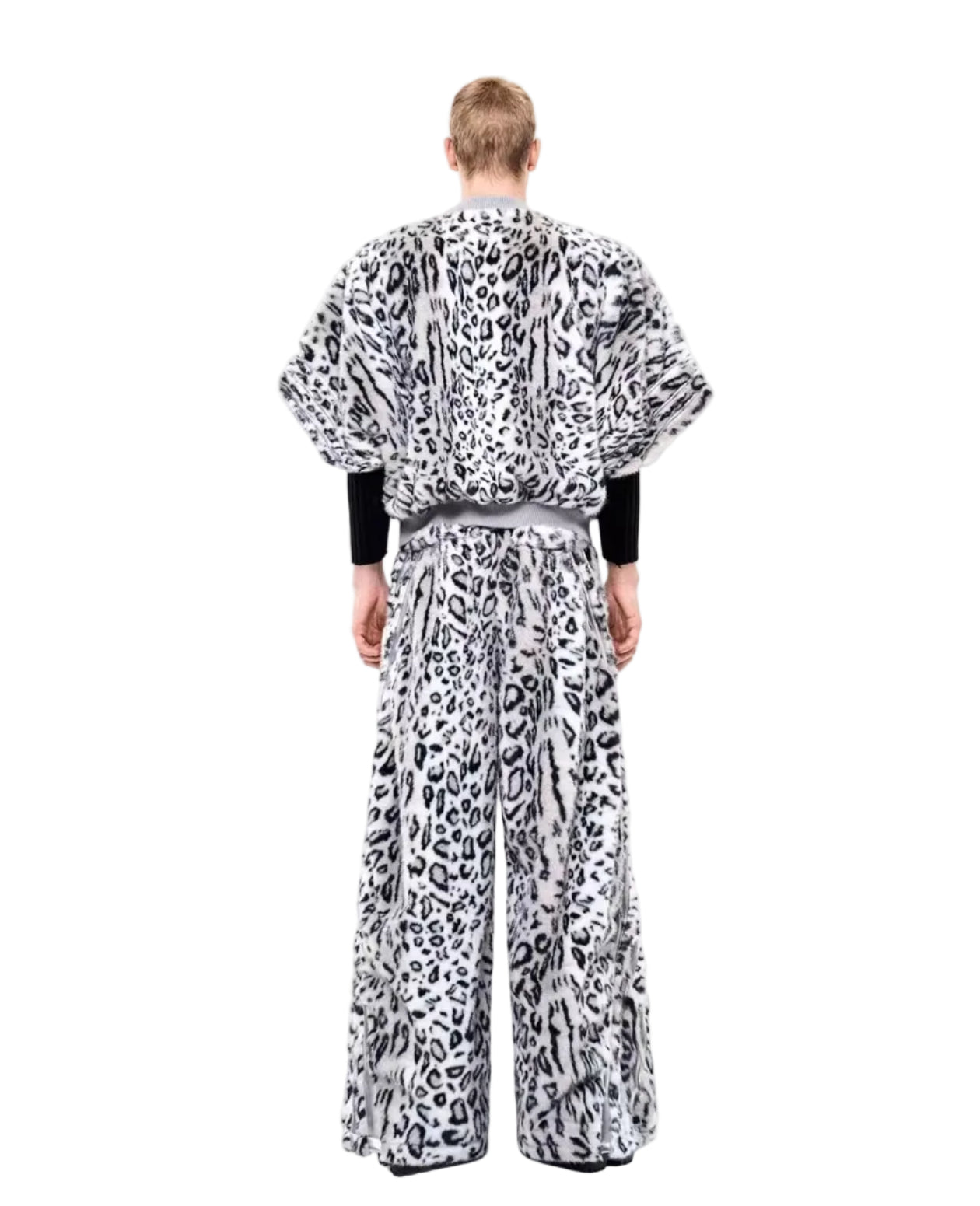 - نمط فهد الثلج من الفرو الصناعي الصديق للبيئة, بدون وسائد كتف.