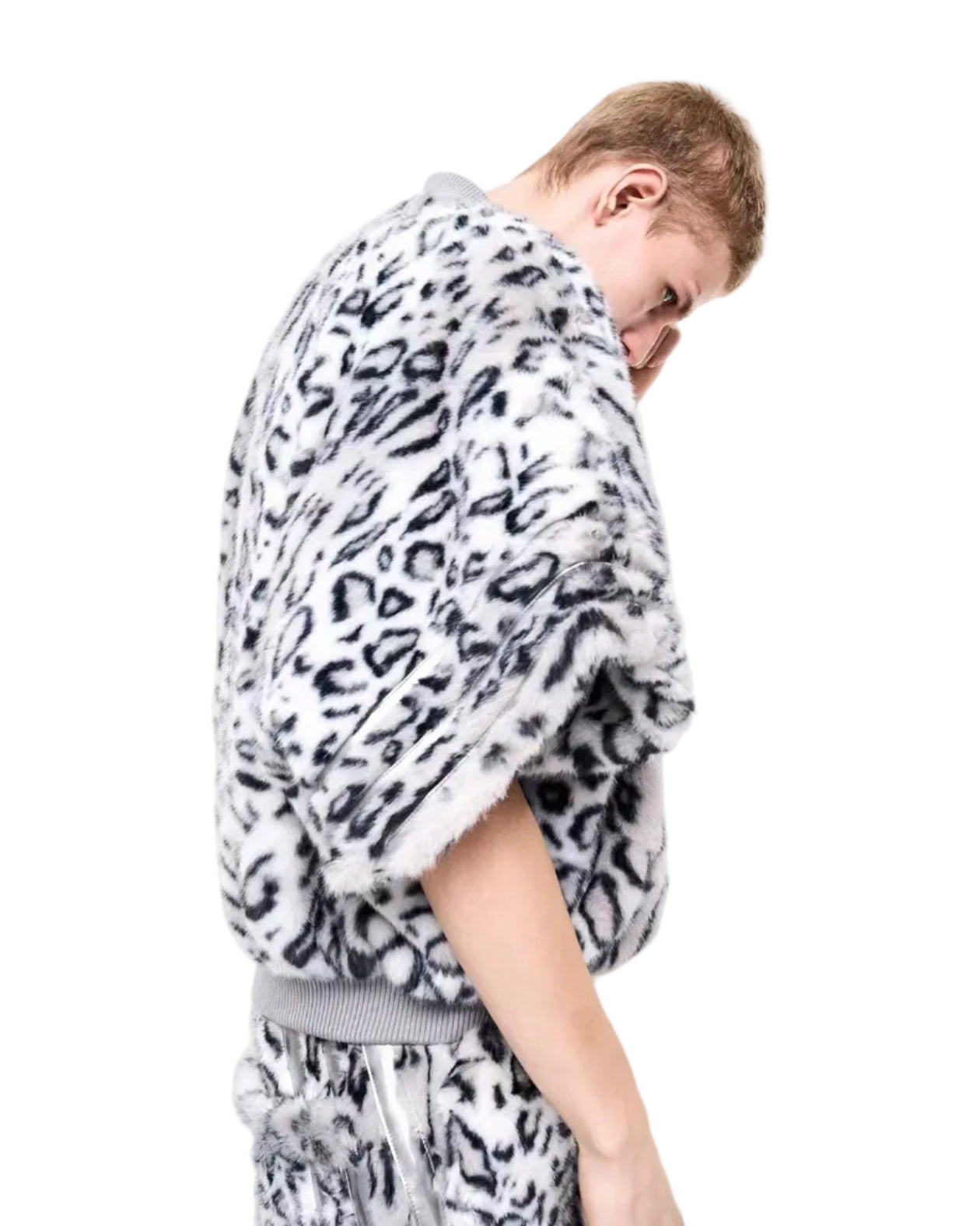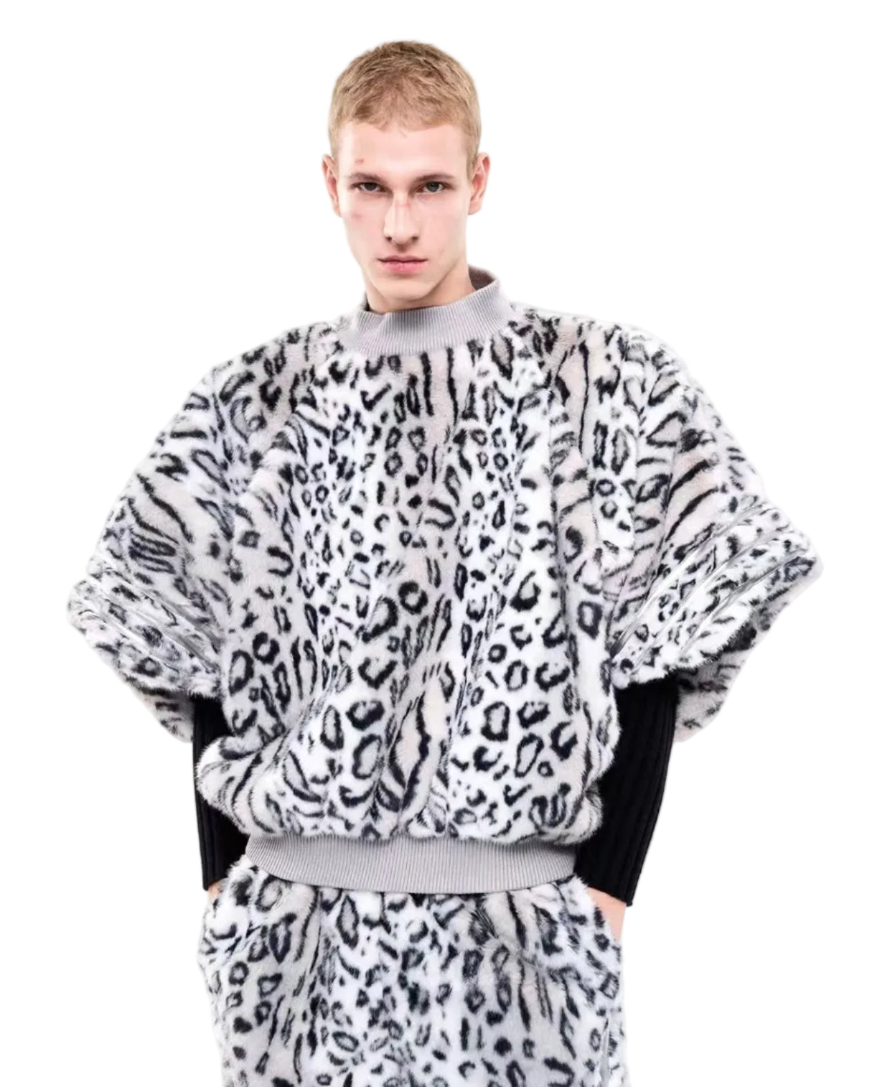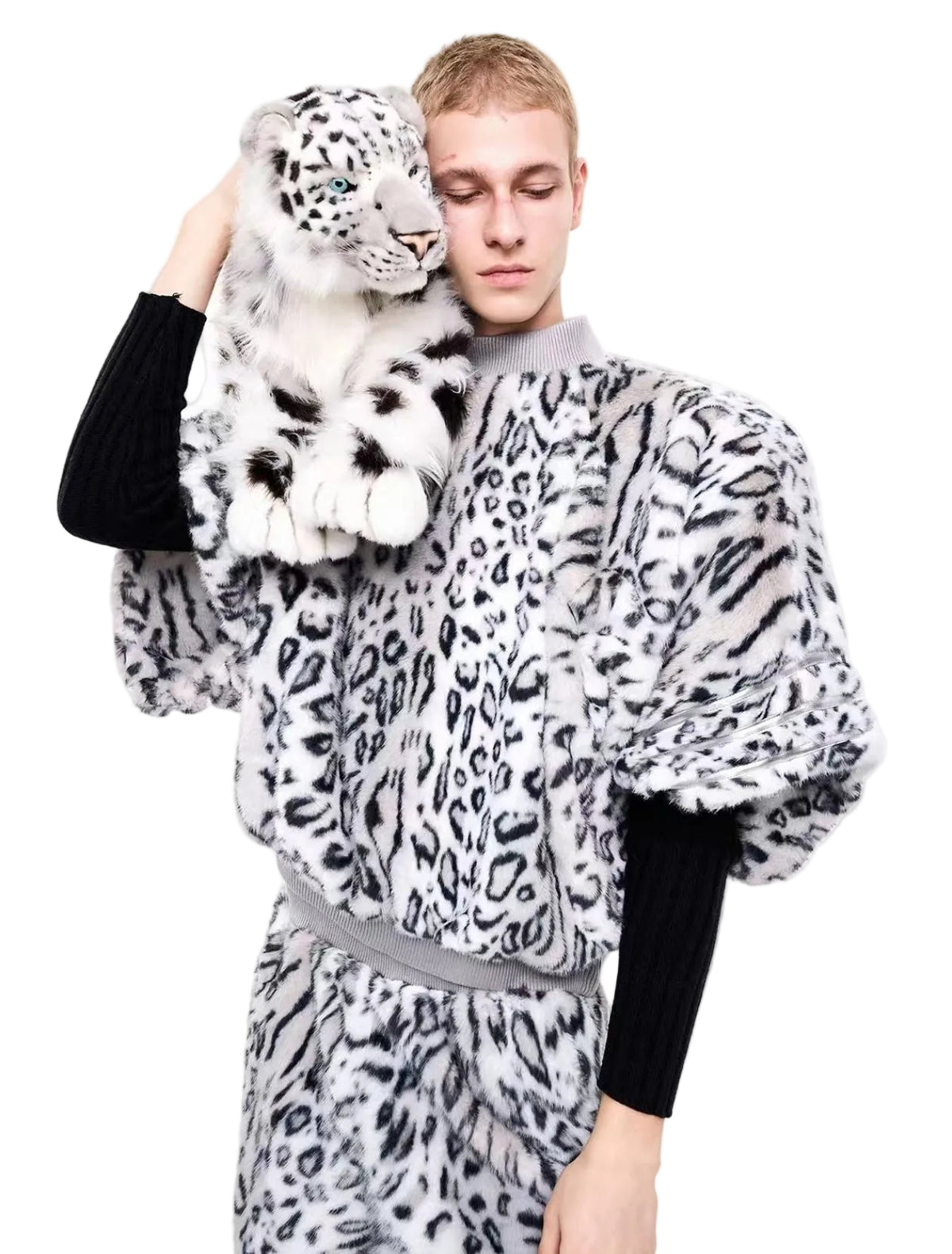 سترة بولوفر من الفرو الصناعي بنقشة النمر