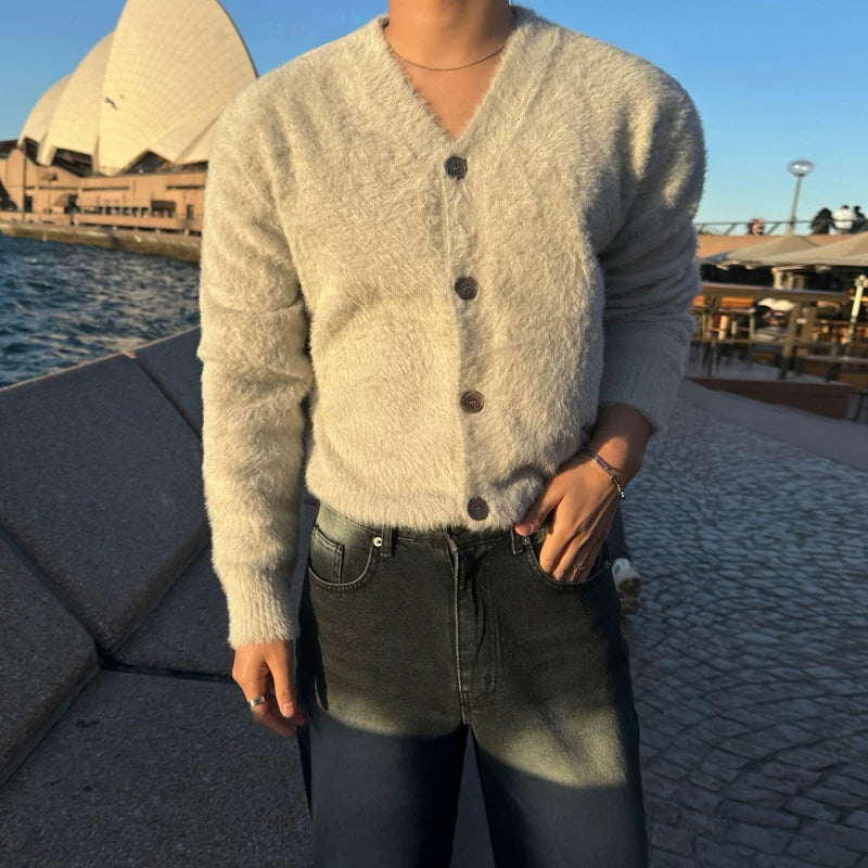كارديجان محبوك ناعم وفuzzy على شكل حرف V