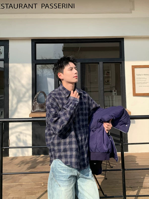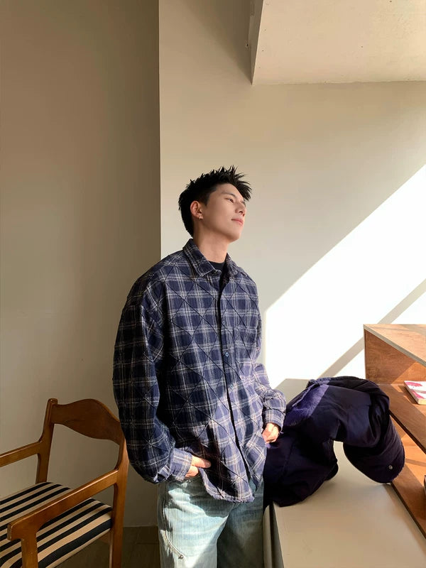 قميص طويل الأكمام من القطن بنقشة مربعات مصقولة