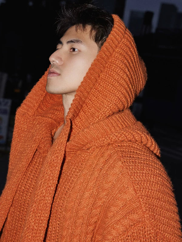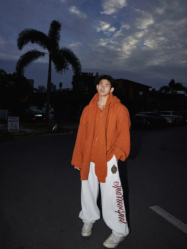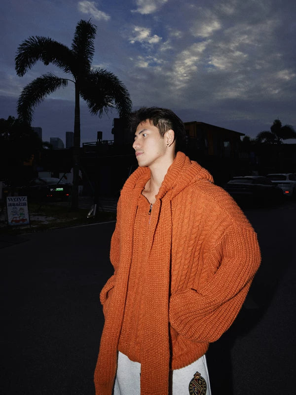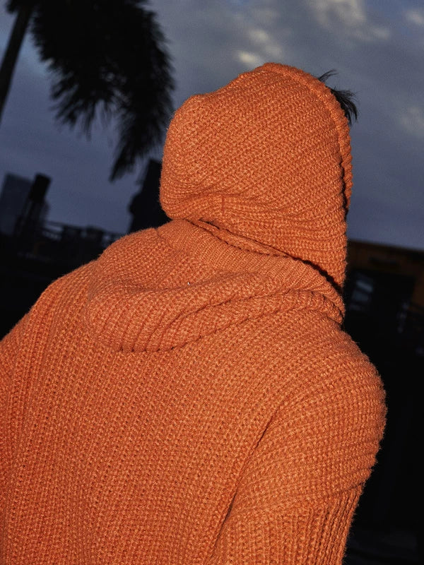 سويت شيرت مزود بغطاء رأس مزدوج من الصوف مع سحاب بتصميم ريترو