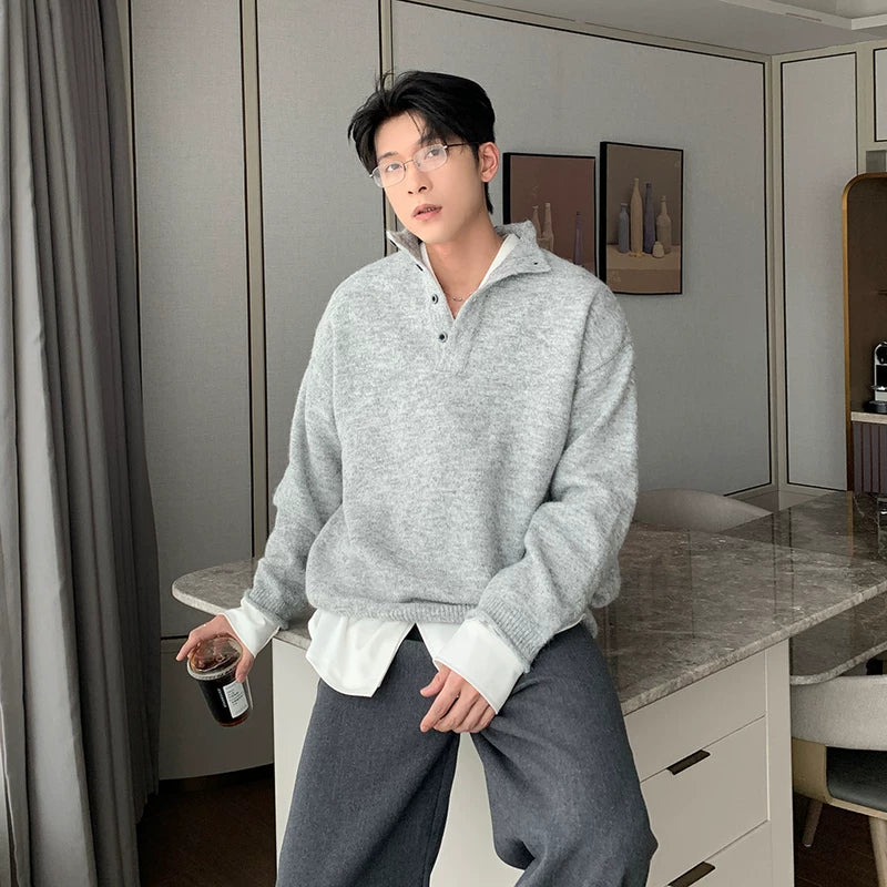 سويت شيرت محبوك برقبة عالية نصف سحاب شتوي