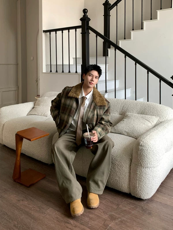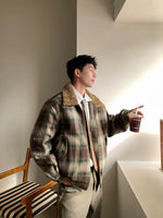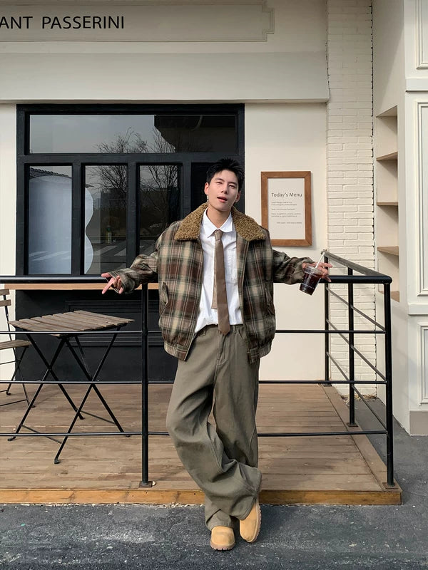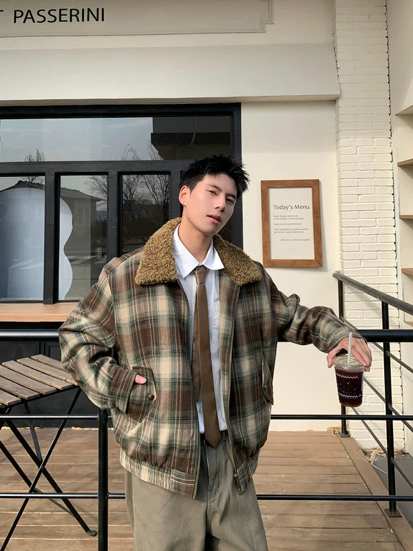جاكيت شتوي مبطن بياقة شيربا مخططة