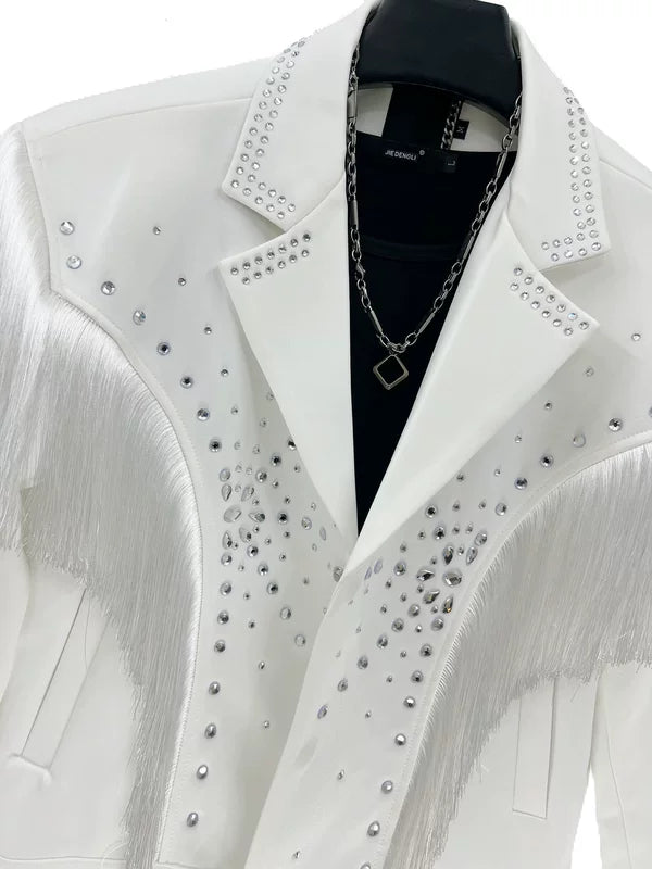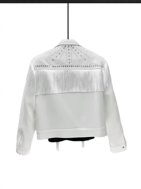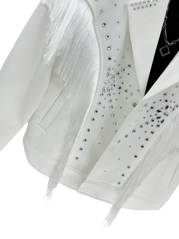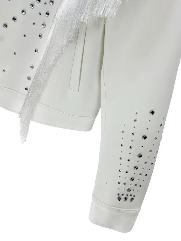 جاكيت قصير بكولار مزين بالأحجار اللامعة مع دلايات