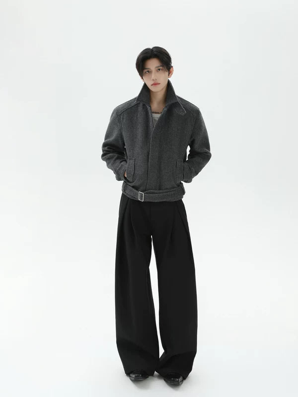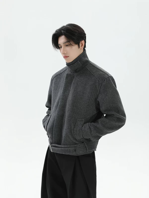 سترة من الصوف ذات ياقة مرتفعة مع كتفين مُهيكلين