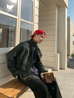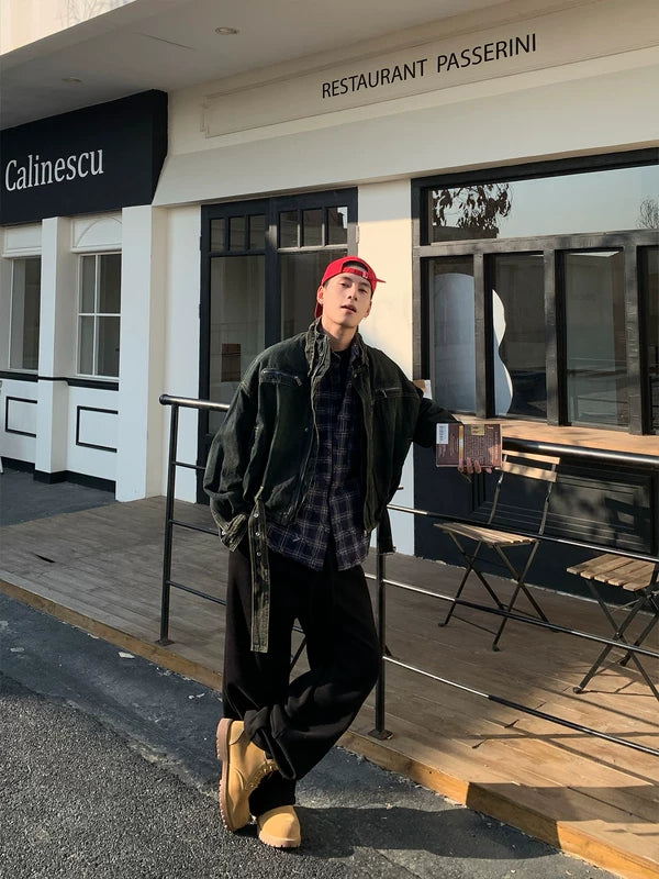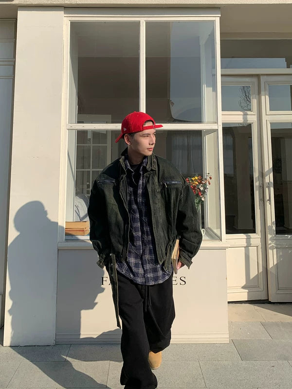 جاكيت عمل من الدنيم واسع مناسب للغسل
