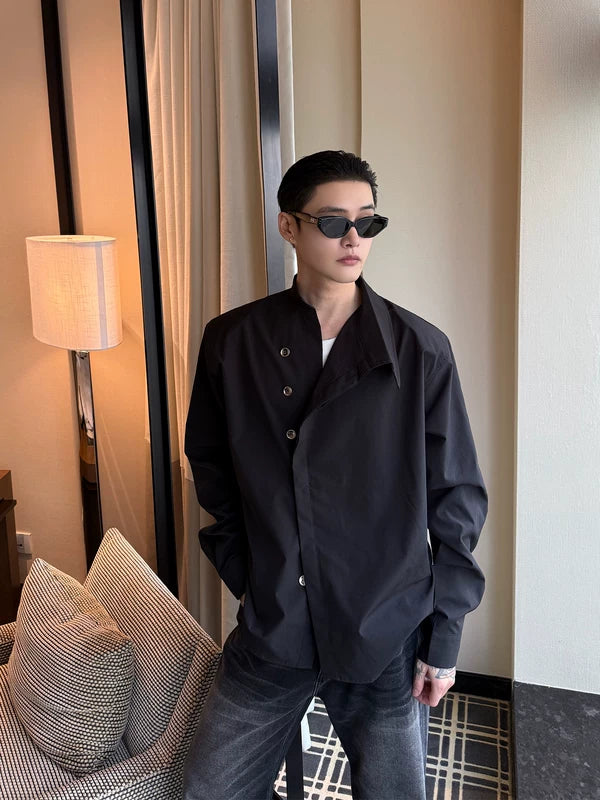 قميص بأكمام طويلة غير متماثل بأسلوب مينيمالي