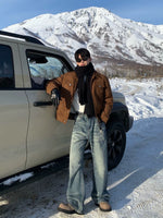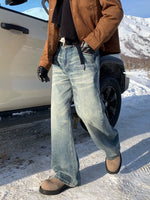 جينز مستقيم الساق بتصميم قديم متآكل