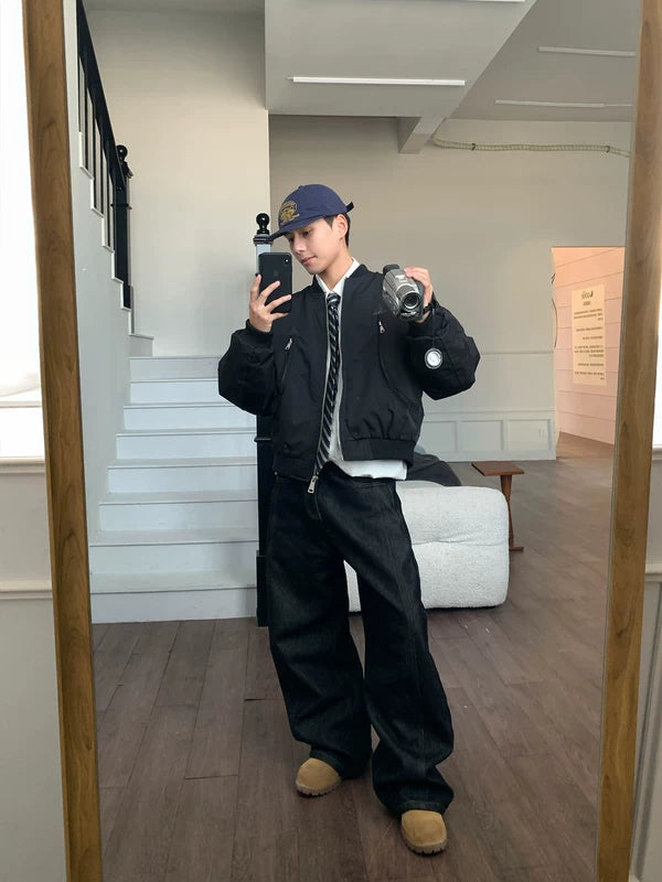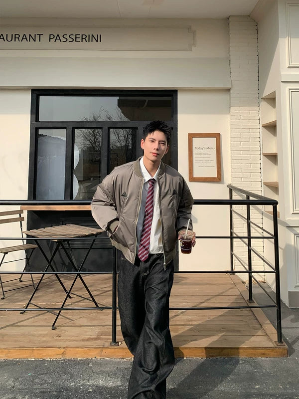 جاكيت بومبر منفوخ بياقة ستاند كلاسيكية