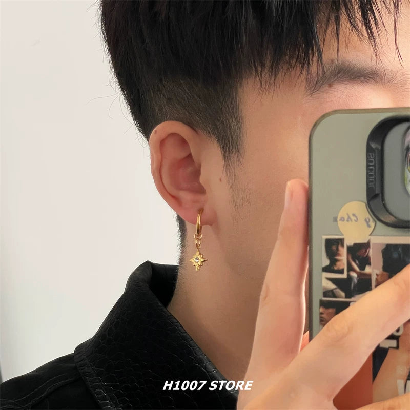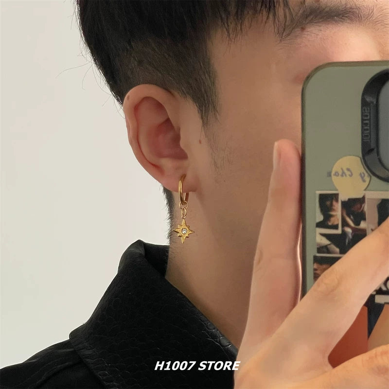 Star Dangle Titanium Steel Hoop Earrings