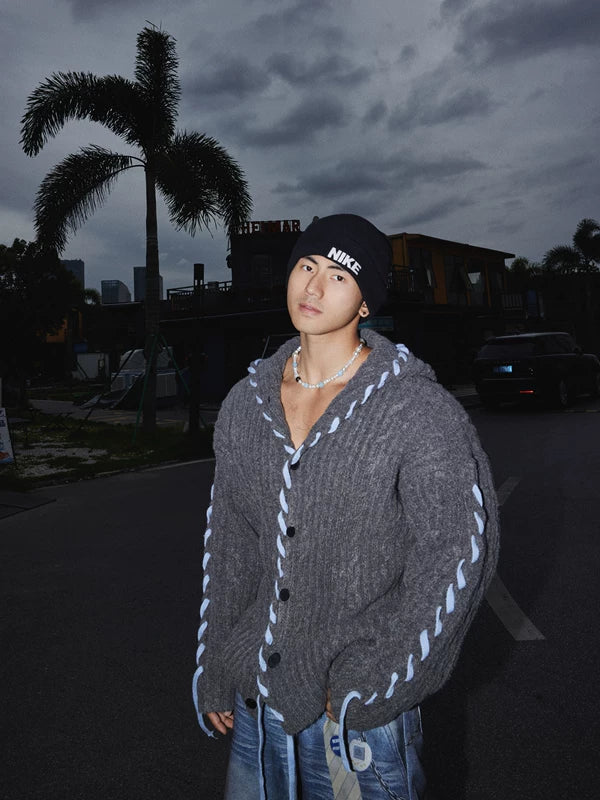 سويت شيرت بغطاء رأس مع حافة مزودة بسلسلة