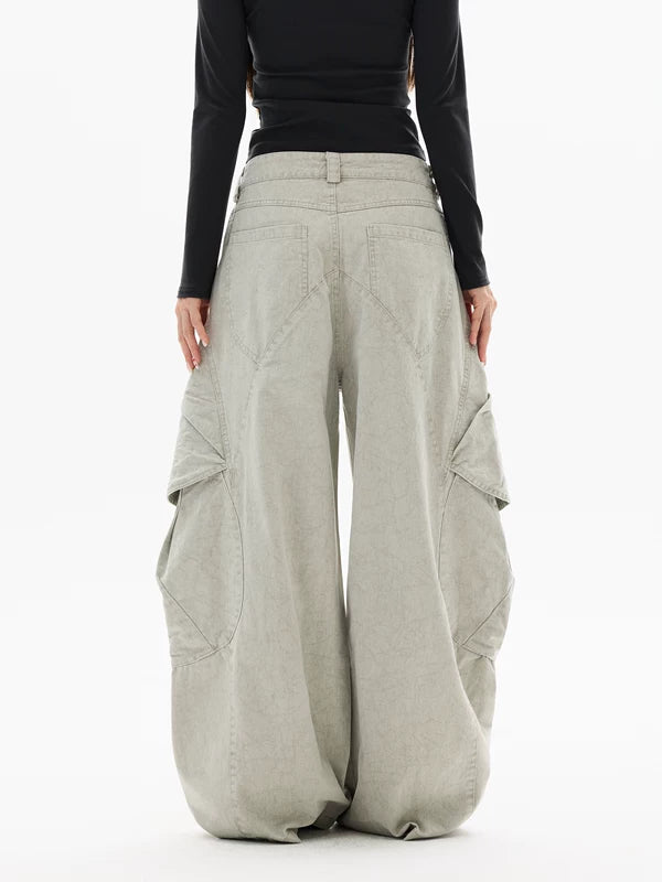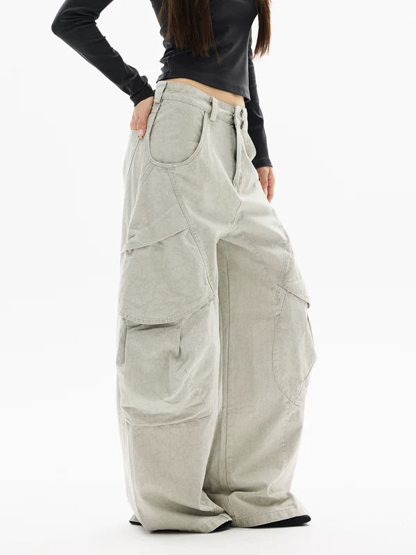 بنطلونات كارجو فضفاضة ذات أرجل واسعة