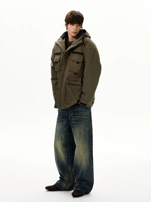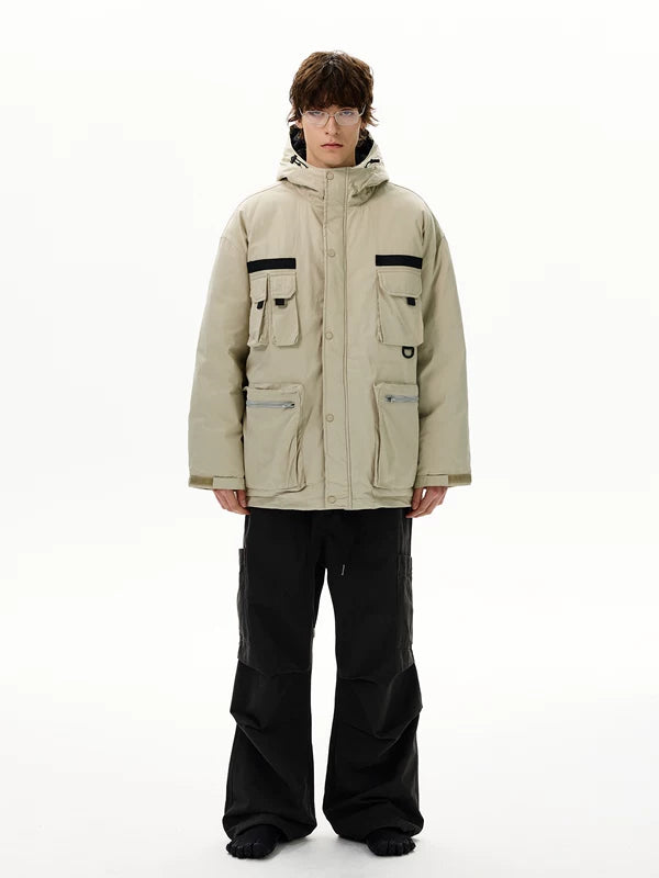 جاكيت قطن مزود بغطاء رأس متعدد الجيوب لفصل الشتاء
