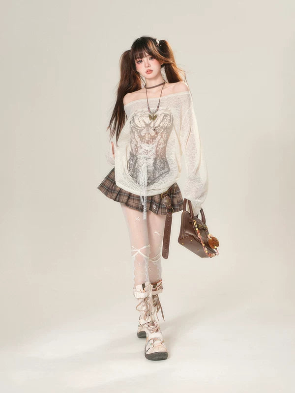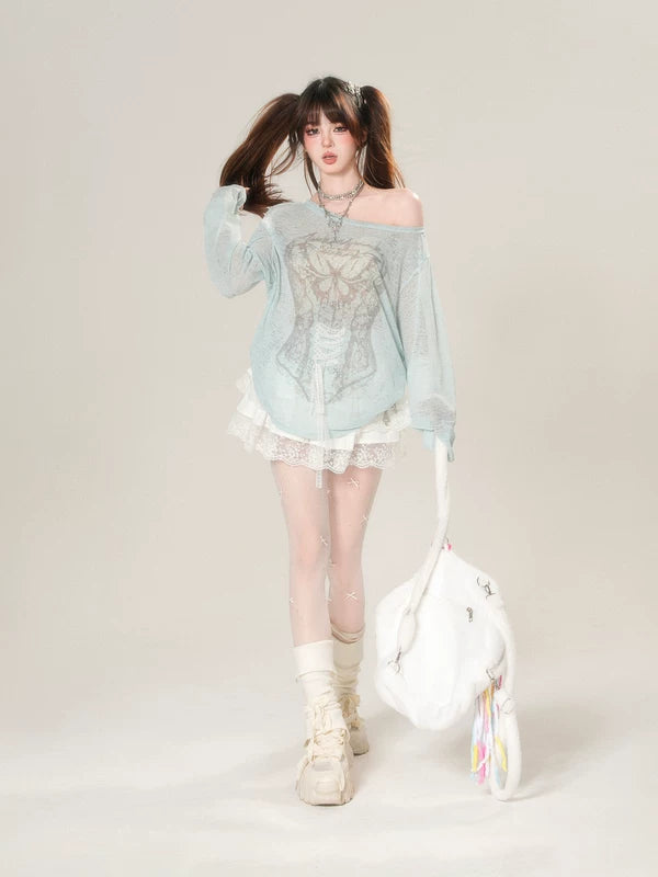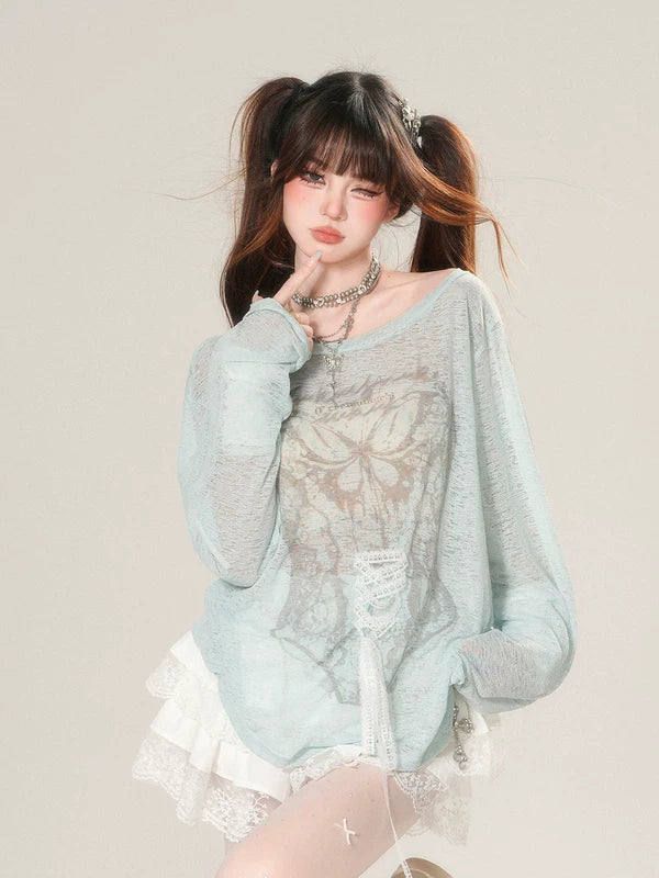 بلوزة بولوبر بطبعة فراشة من الدانتيل الشفاف