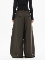 بنطال طويل واسع مخطط بطيه