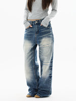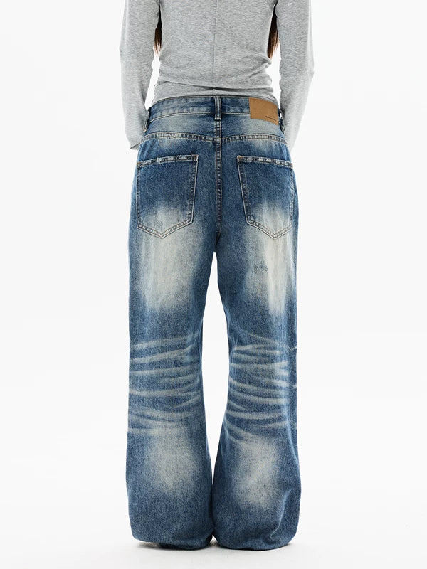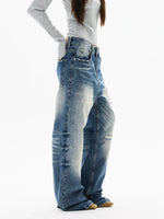 جينز واسع الساق بتصميم متهالك ومغسول بشكل عتيق