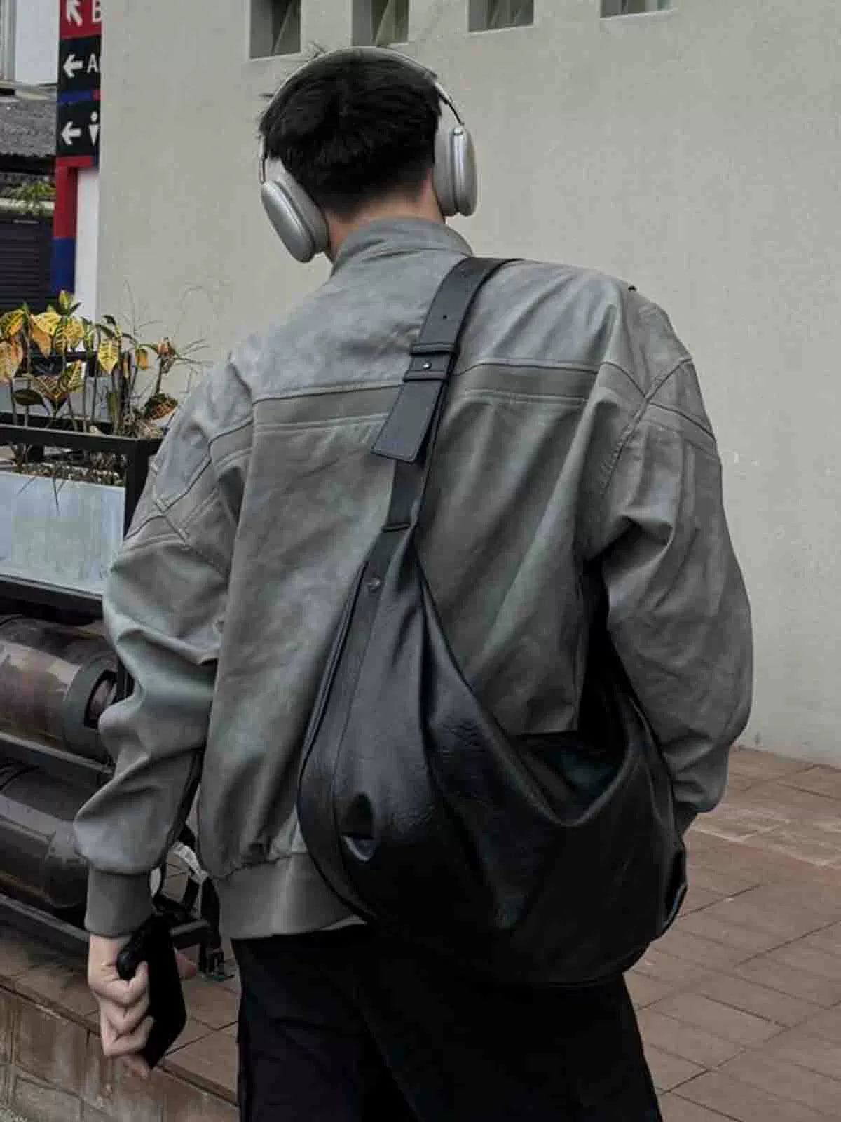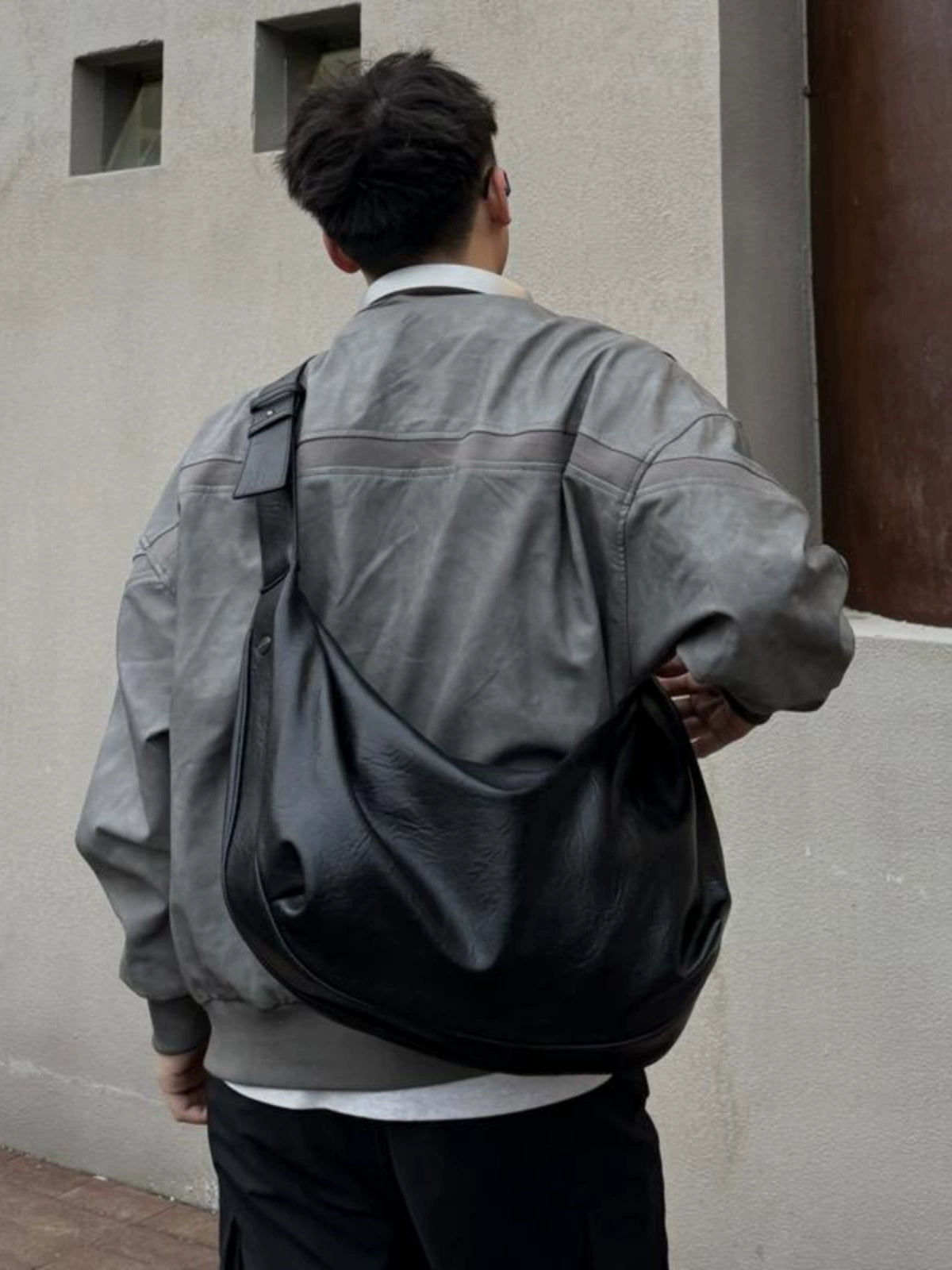 حقيبة كتف كبيرة من جلد PU بتصميم ريترو