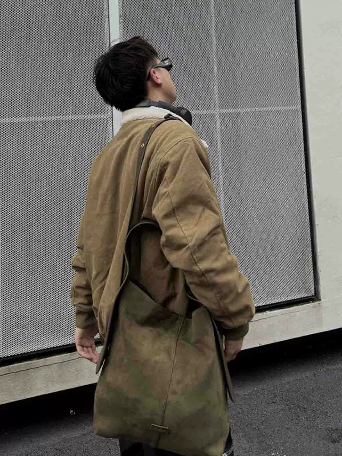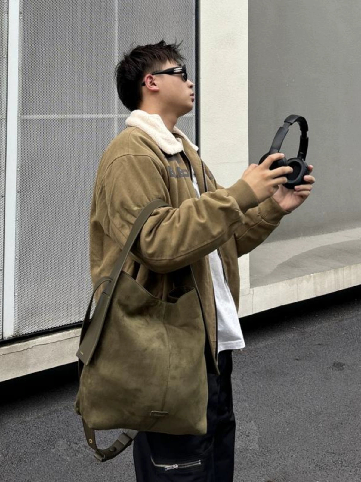 حقيبة كتف كبيرة السعة من جلد السويد العتيق