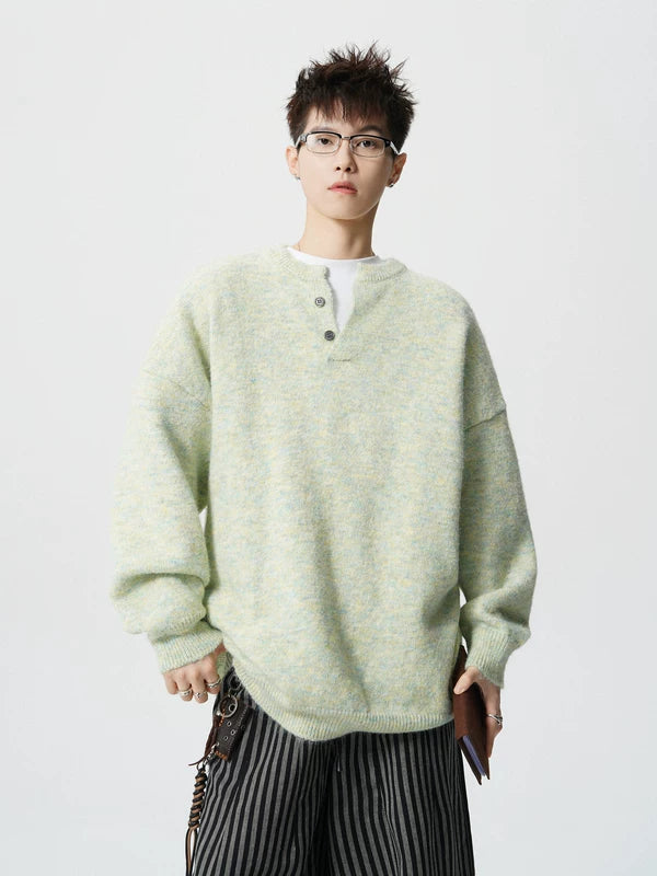 سترة محبوكة بياقة هينلي كبيرة الحجم
