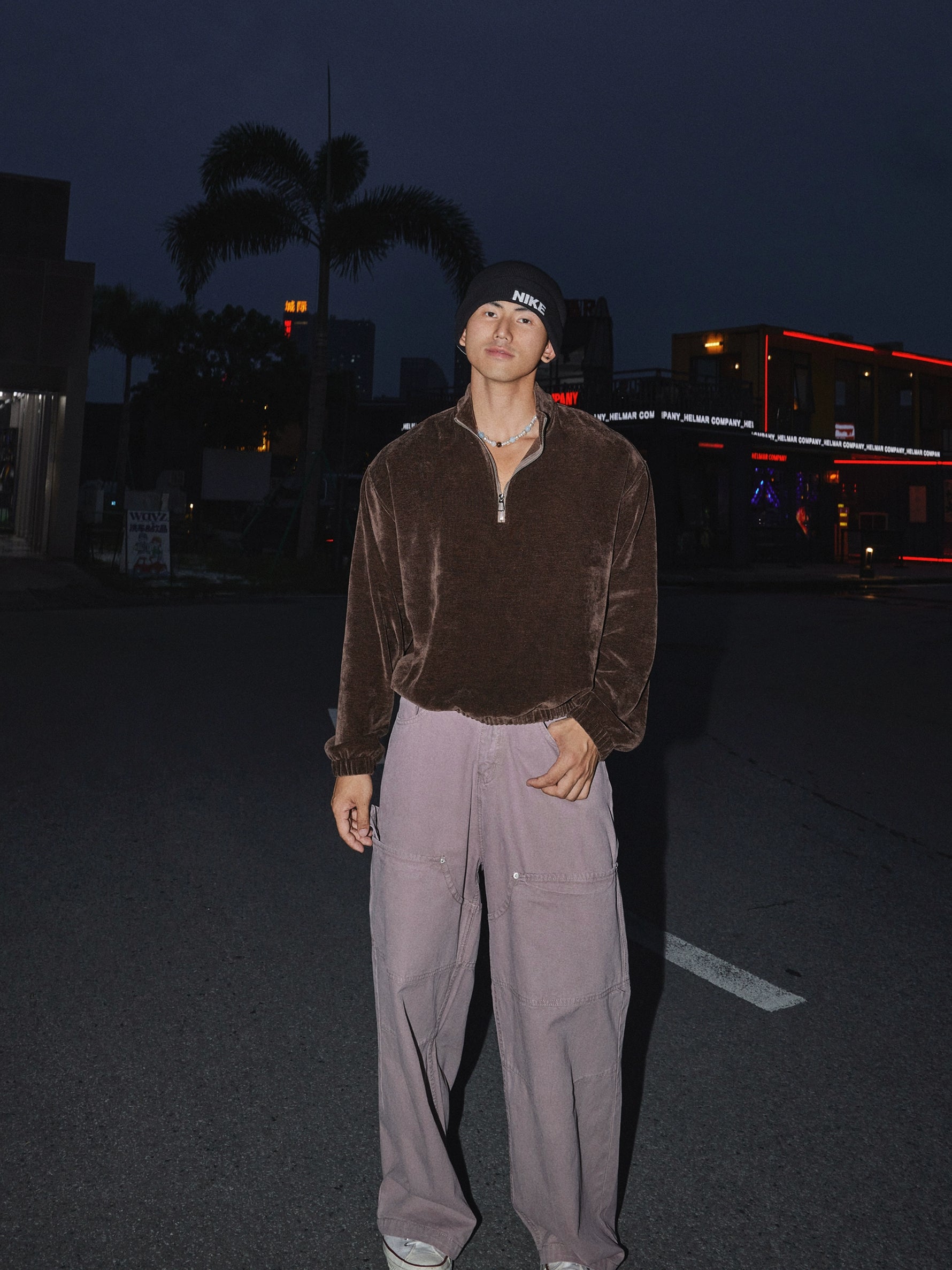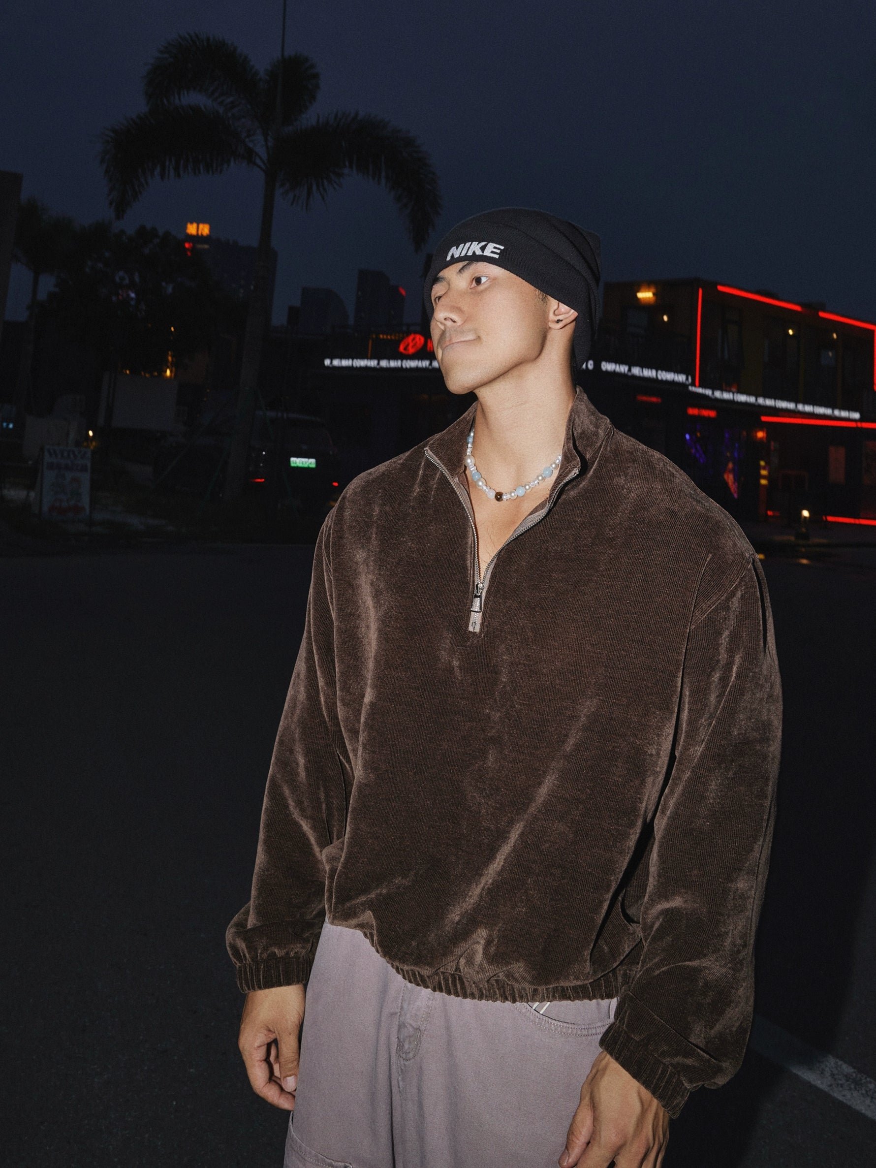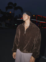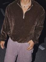 سويت شيرت بسحاب نصف وجرس من جلد الشنيل