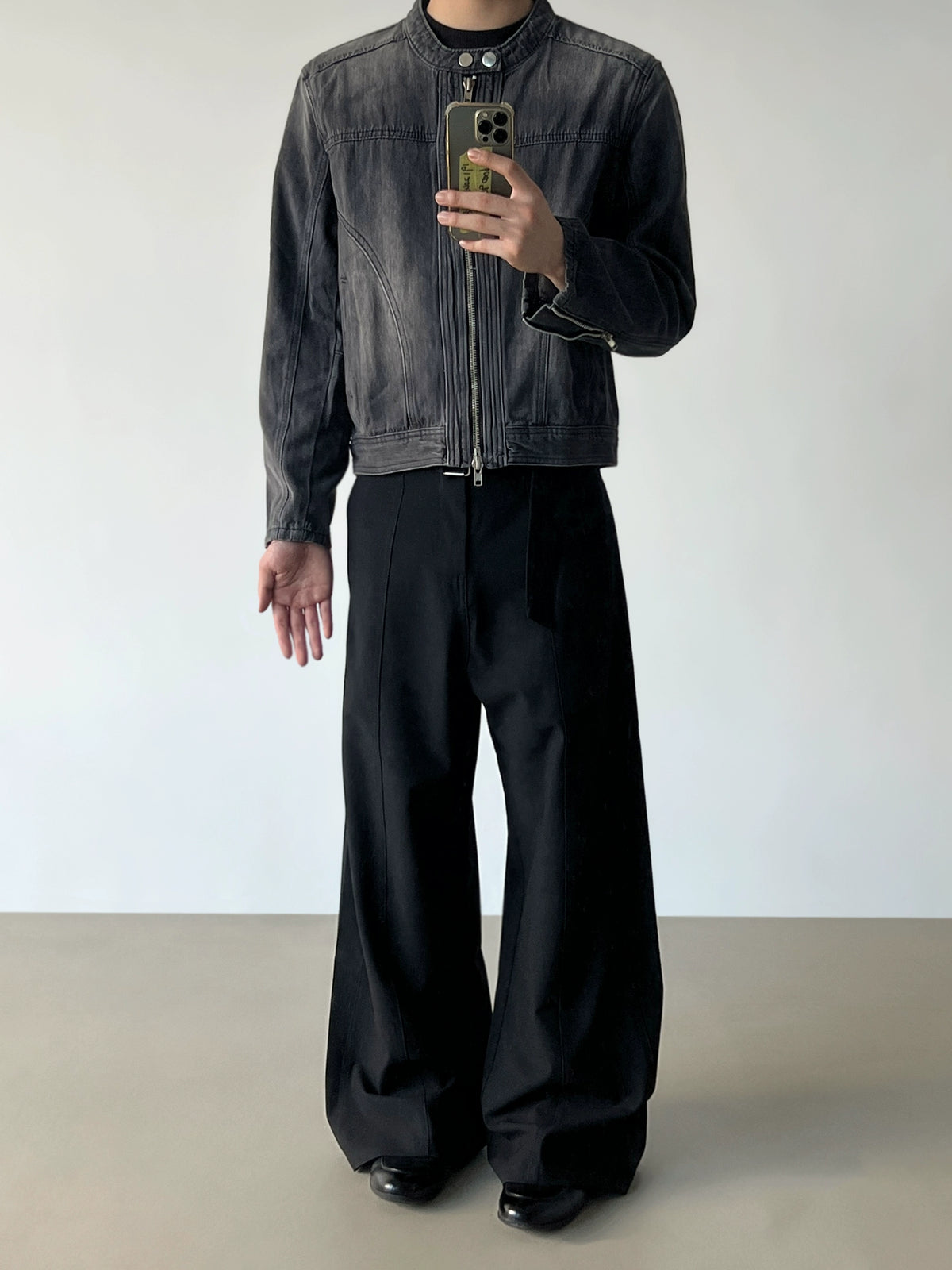 جاكيت عمل مربع من الدنيم المغسول المتشقق