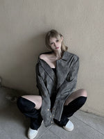 • جاكيت جينز قصير على الكتف, بأسلوب مريح ثقيل.