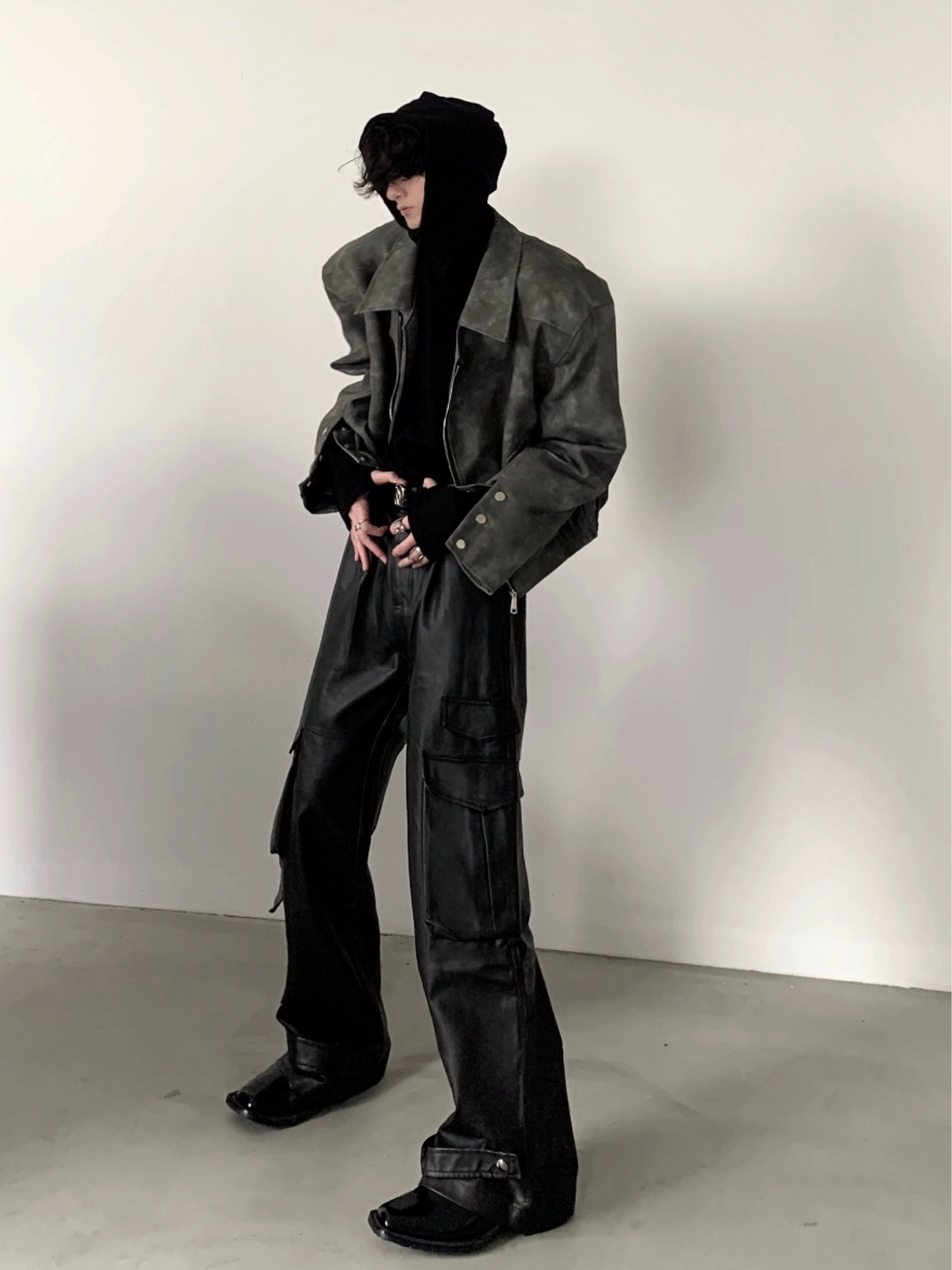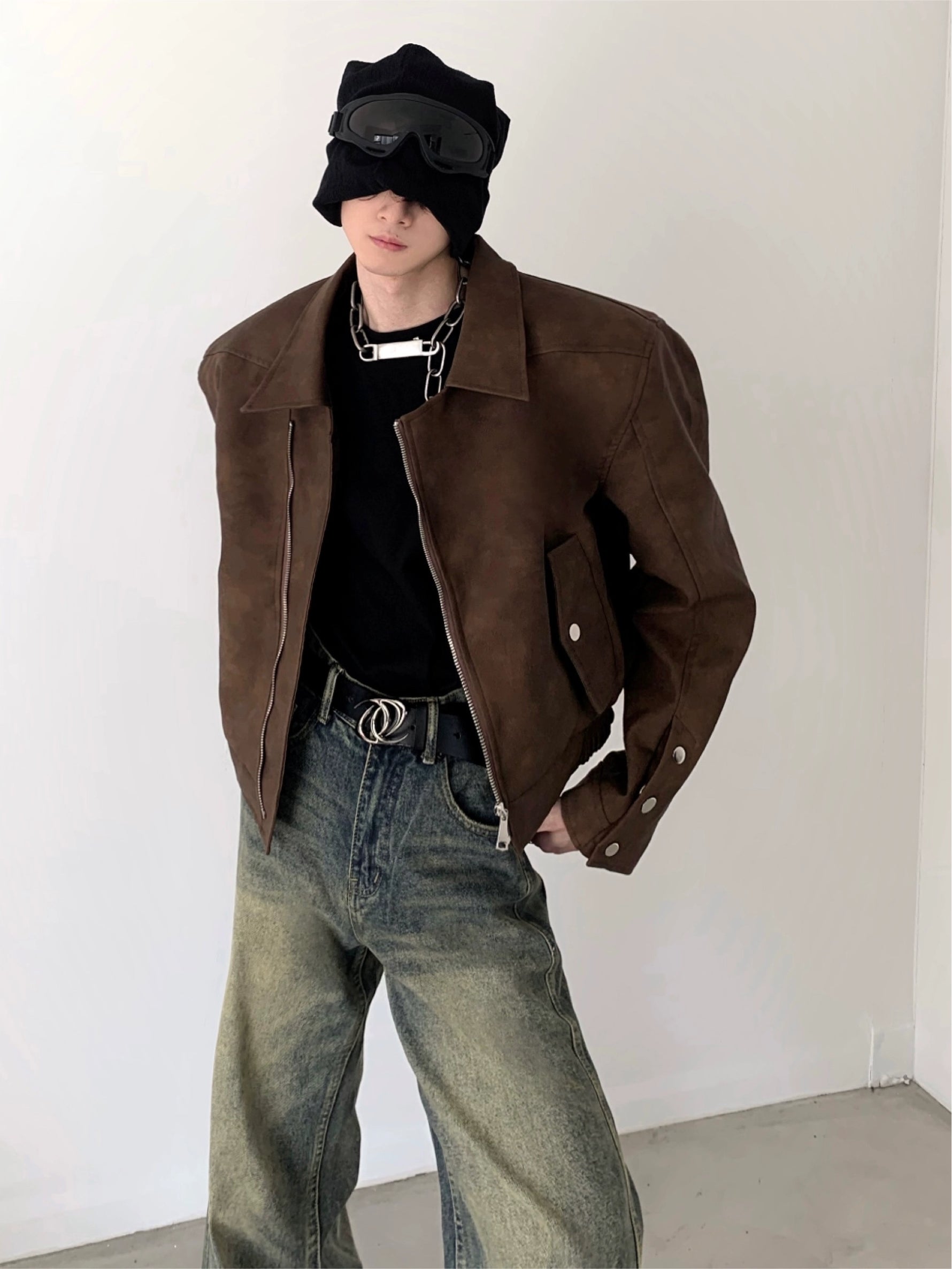 سترة دراجة نارية جلدية عتيقة مع وسادات كتف