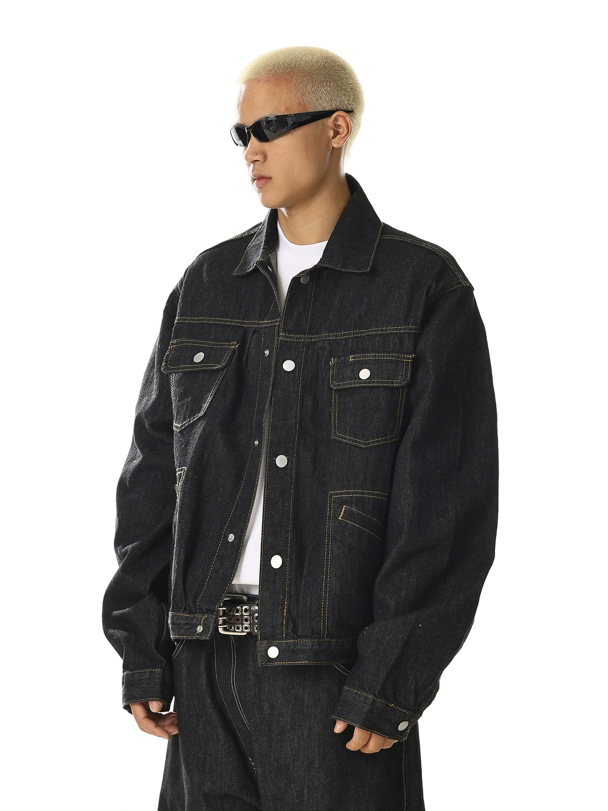 جاكيت جينز فضفاض بتصميم ريترو مع جيوب