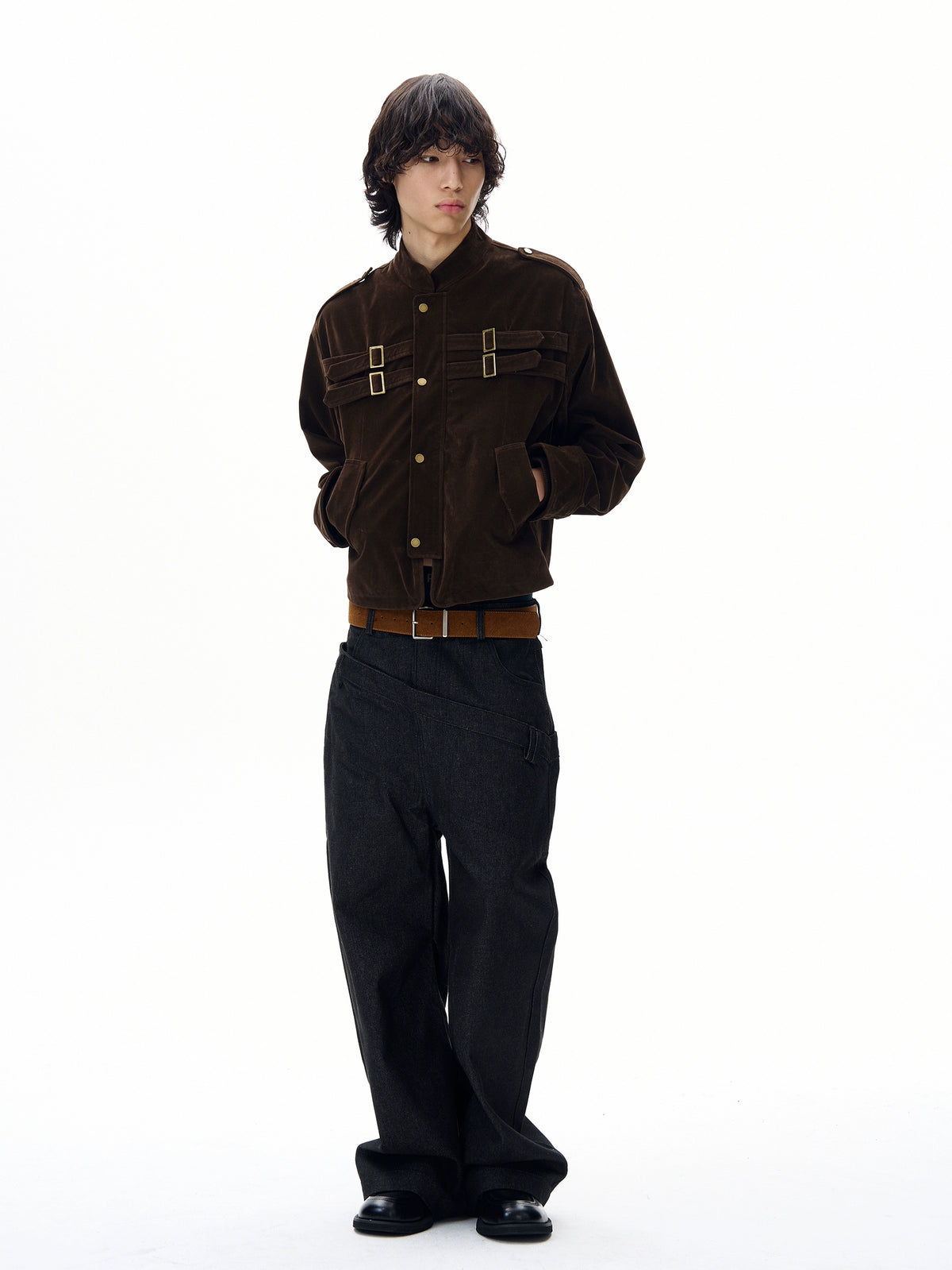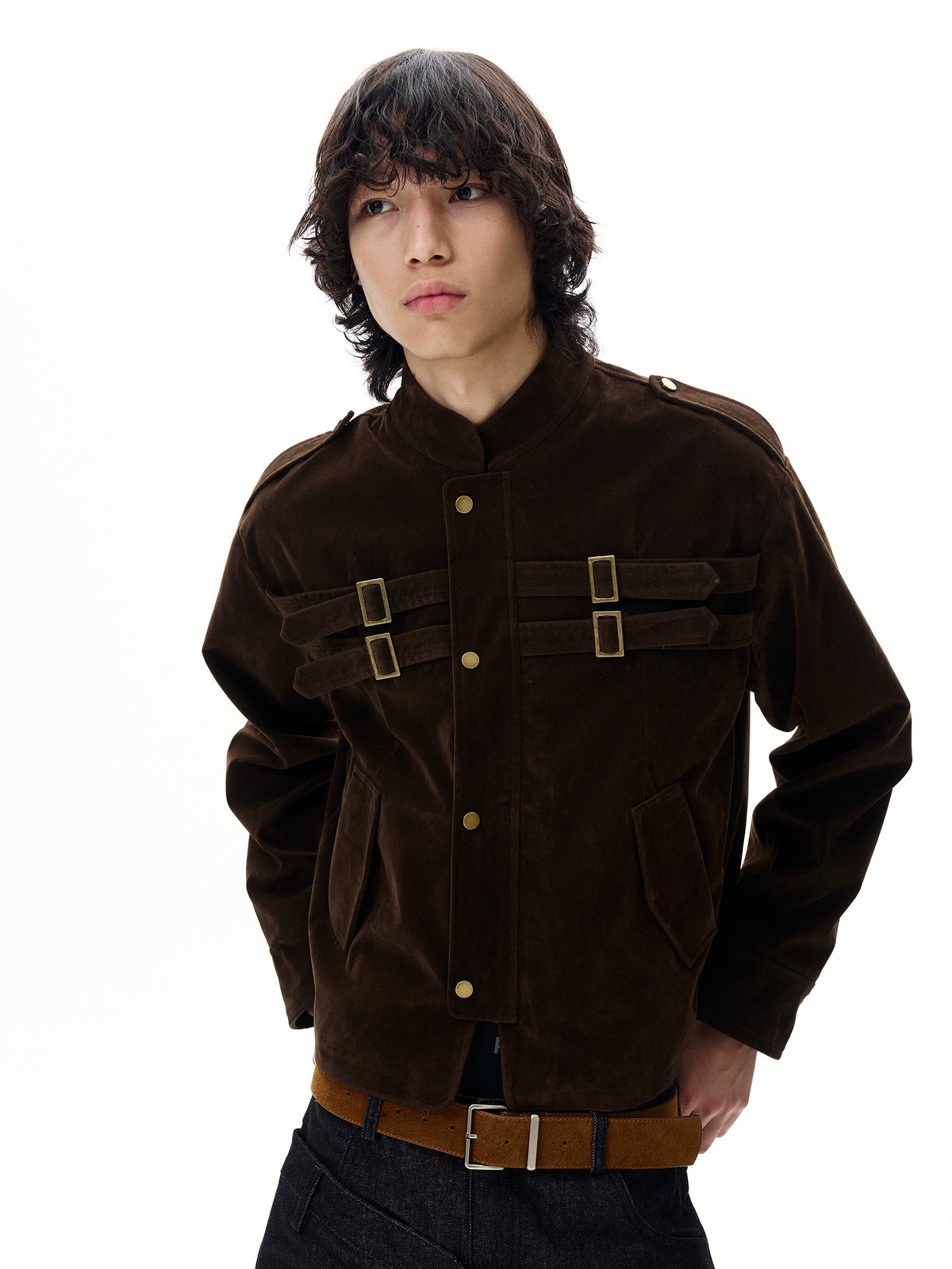 جاكيت قصير من الجلد المدبوغ مع تفاصيل مشبك