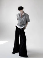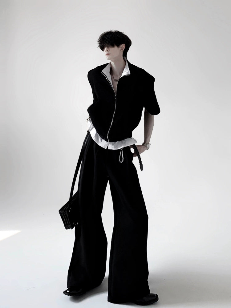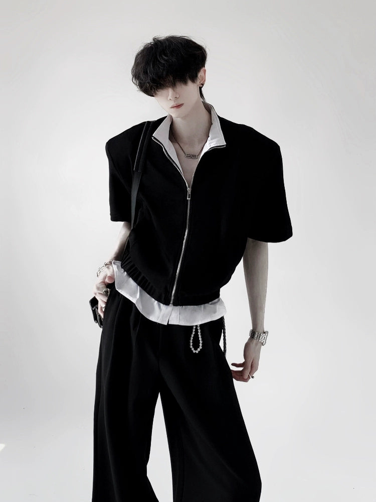 طقم جاكيت بأكمام قصيرة مع وسادات كتف