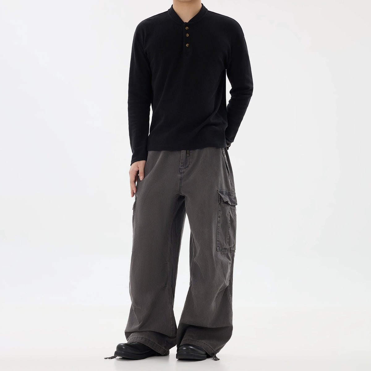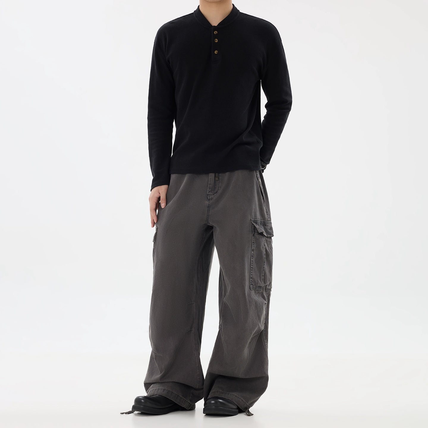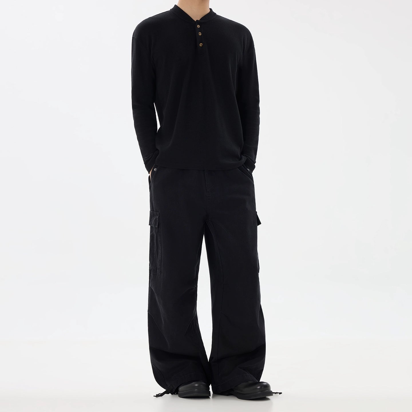 بنطلون واسع الساقين بتصميم متهالك مع جيوب متعددة
