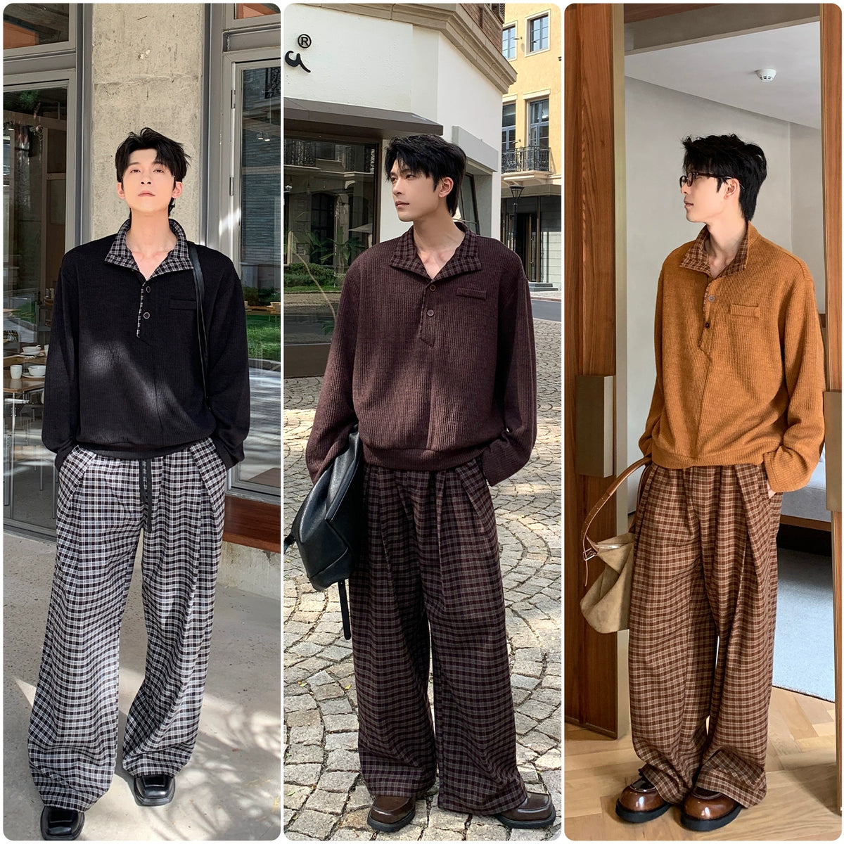 سروال واسع الساق بخصر مرن من قماش الكاروهات