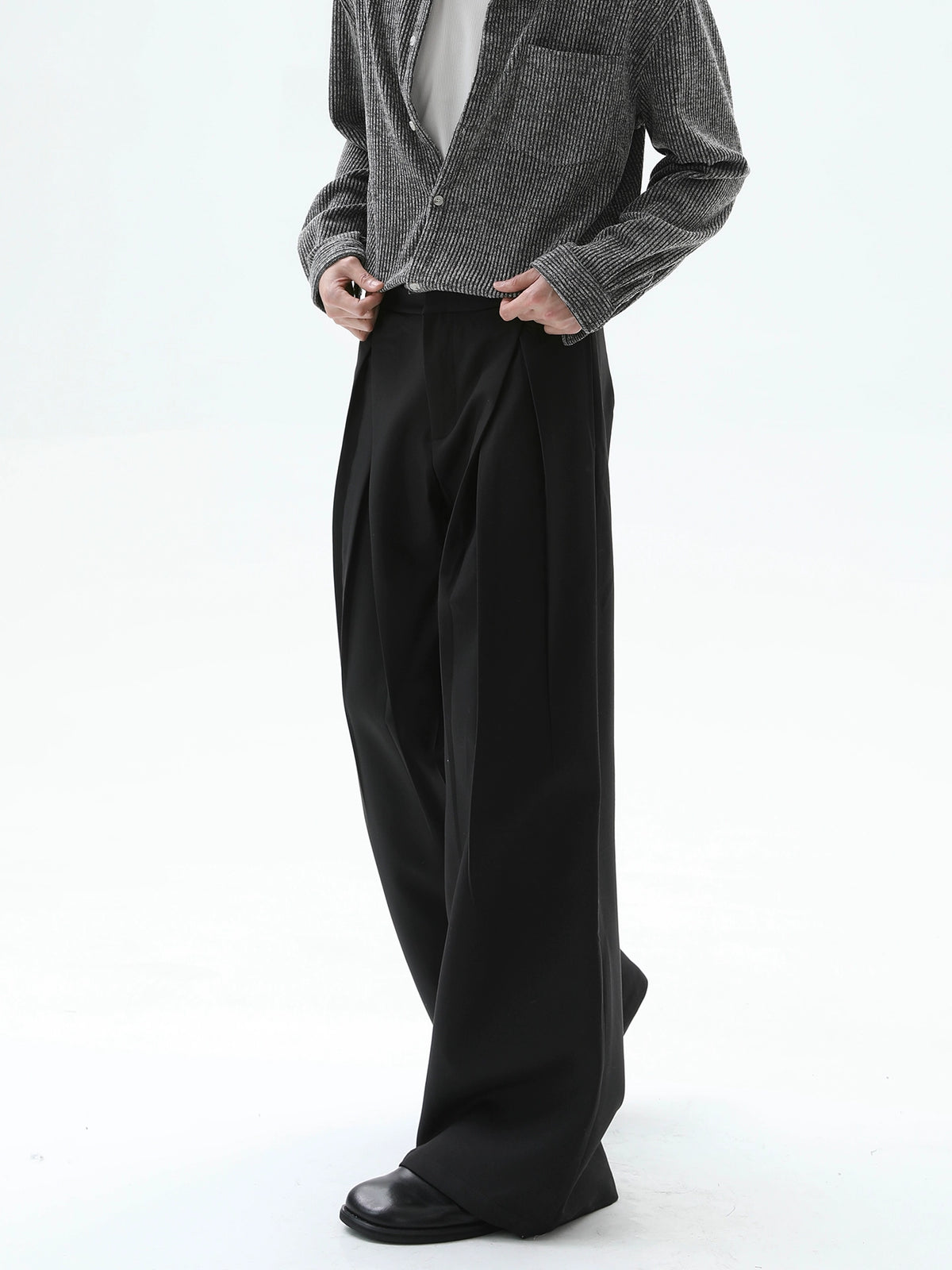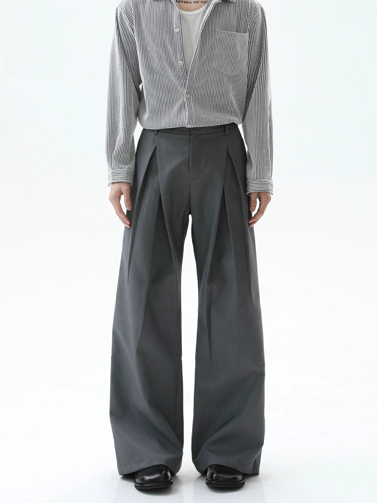 بنطلون مزدوج الطبقات ذو طيات واسعة الساقين