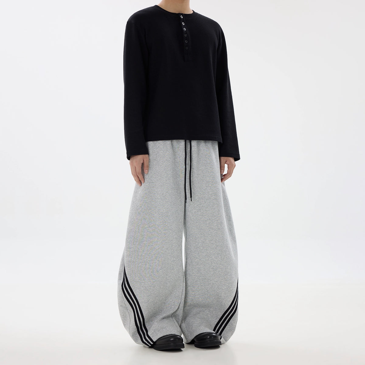 Wide-Leg Three-Stripe Fleece Sweatpants
