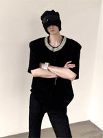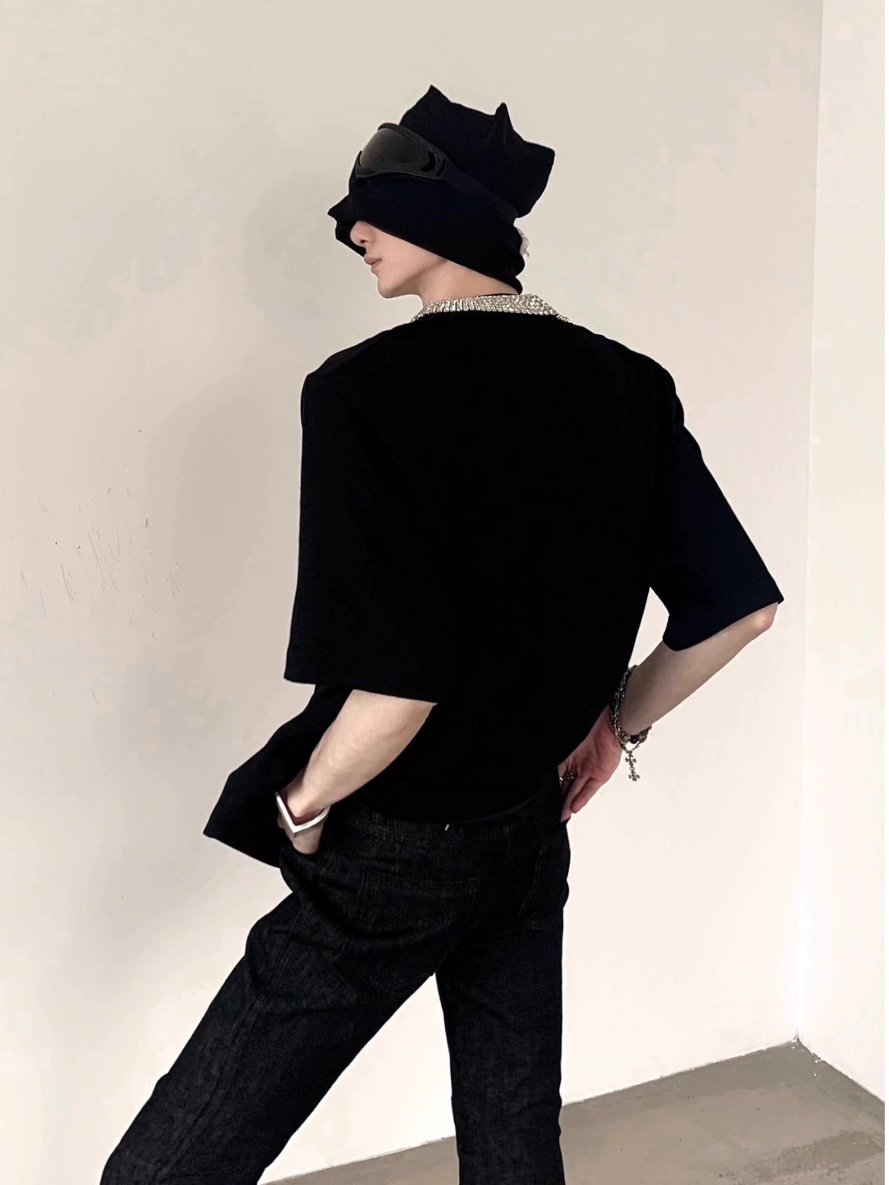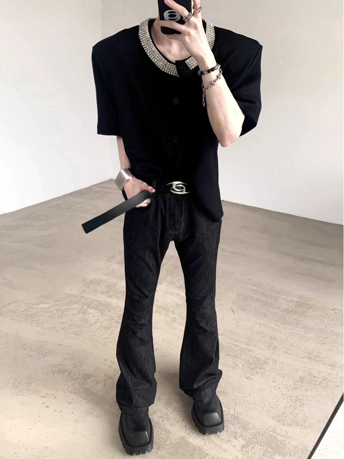 بلوزة قصيرة الأكمام مزينة بالألماس