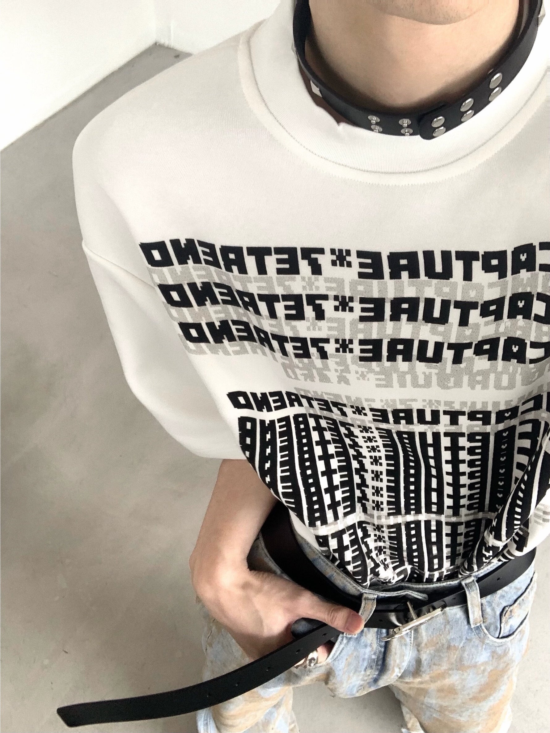 تي شيرت قصير الأكمام بطباعة حرف جرافيكي