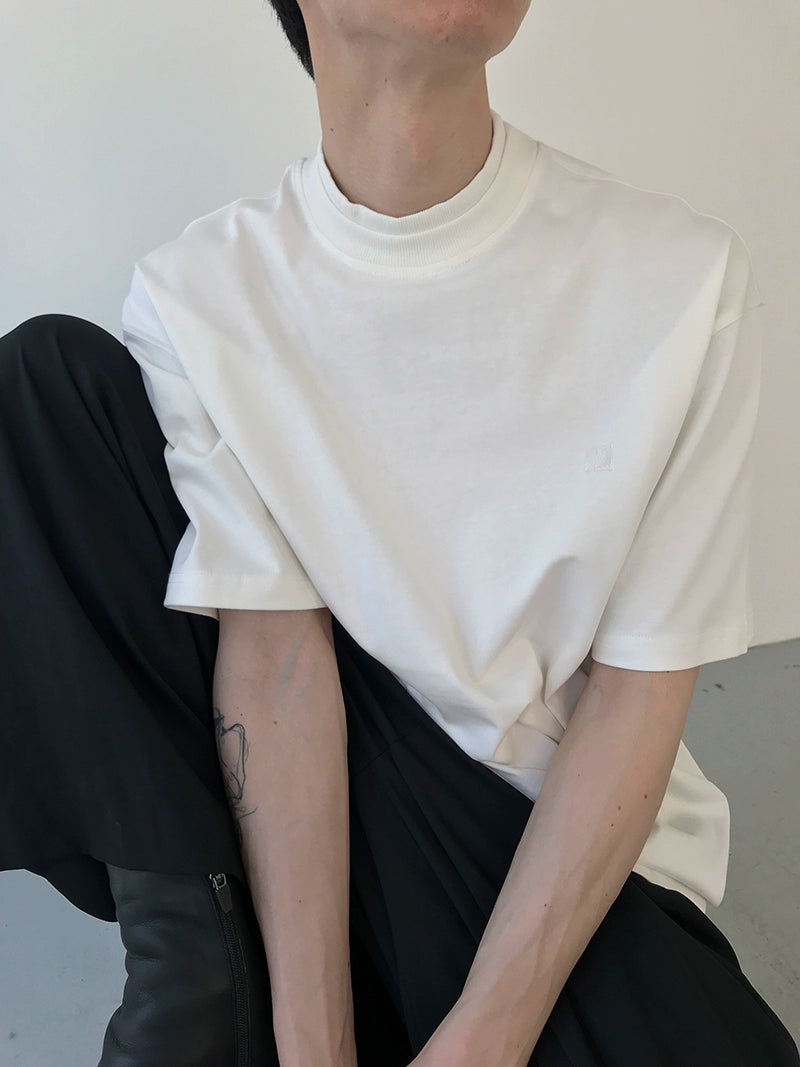 بلوزة قصيرة الأكمام بياقة نصف عالية