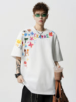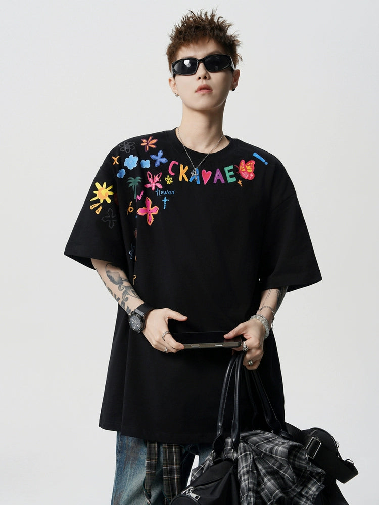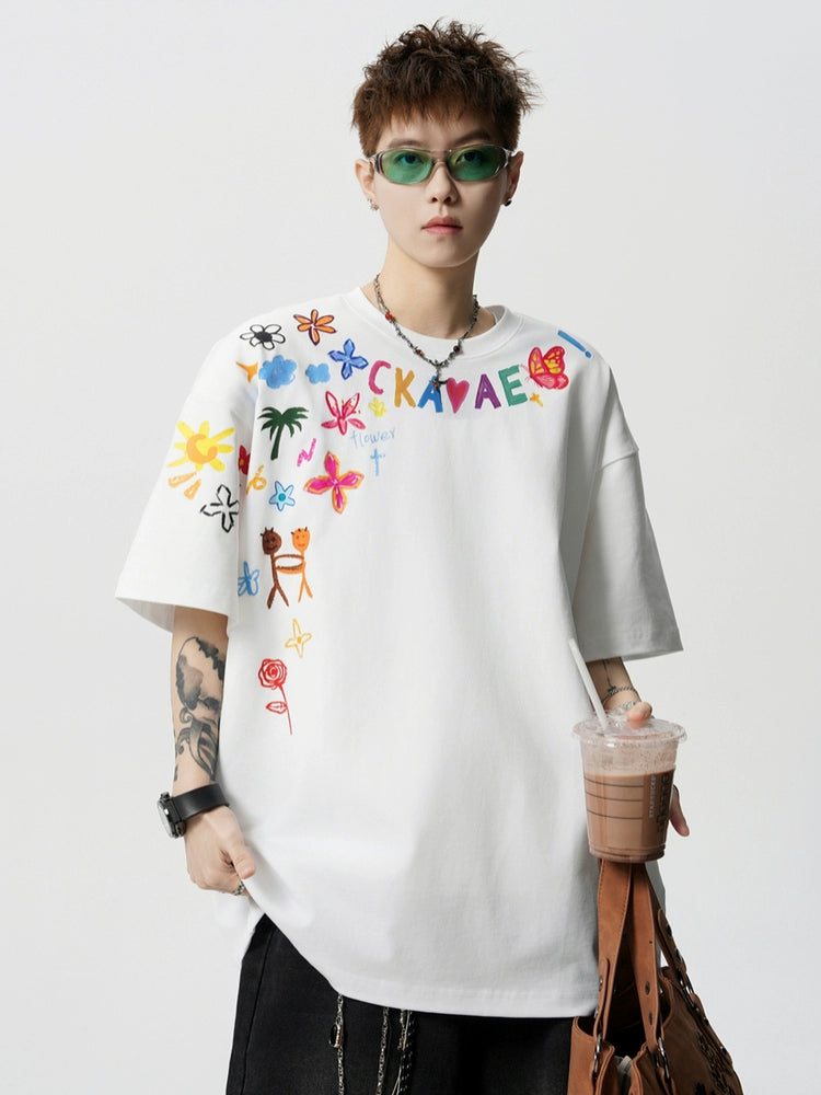 تي شيرت فضفاض بطبعة يدوية