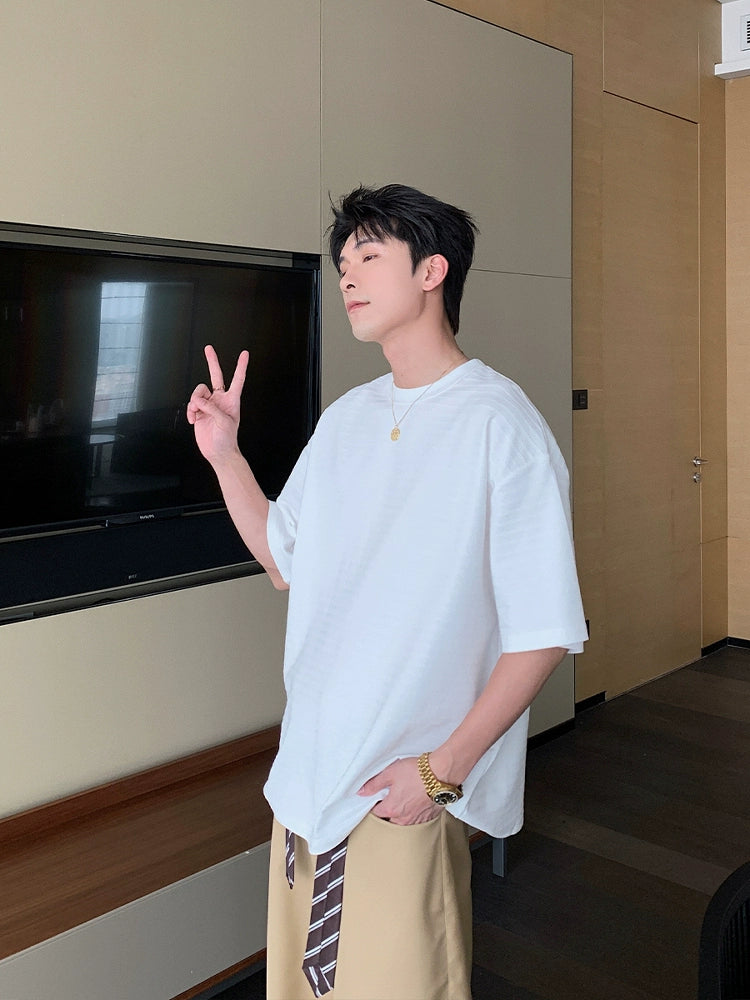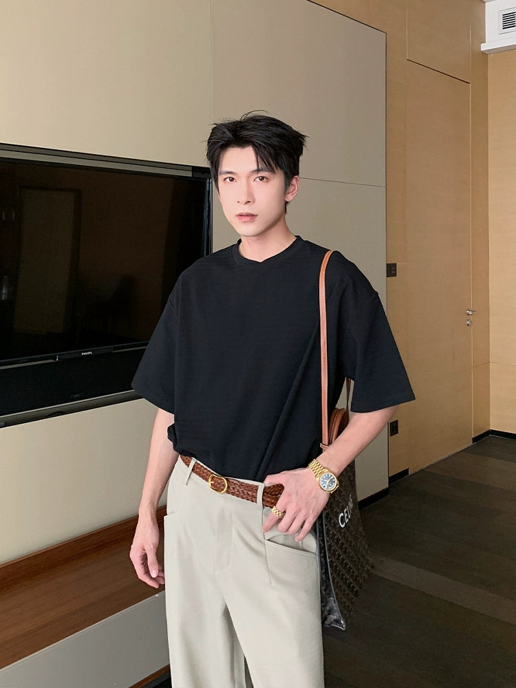 تي شيرت بولوفر قصير الأكمام بقماش سميك