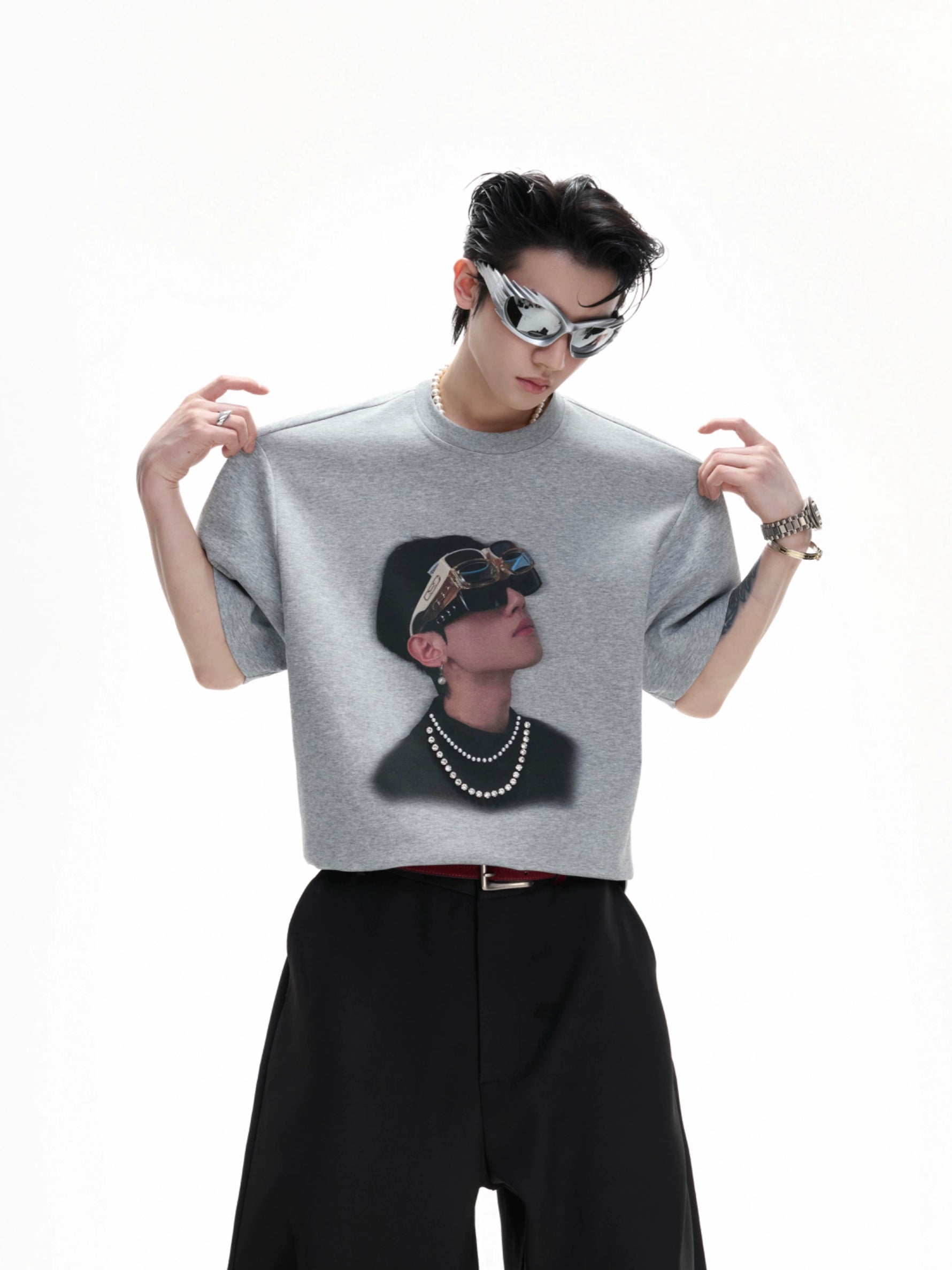تي شيرت مطبوع بفن اللؤلؤ من سلسلة الأيقونات