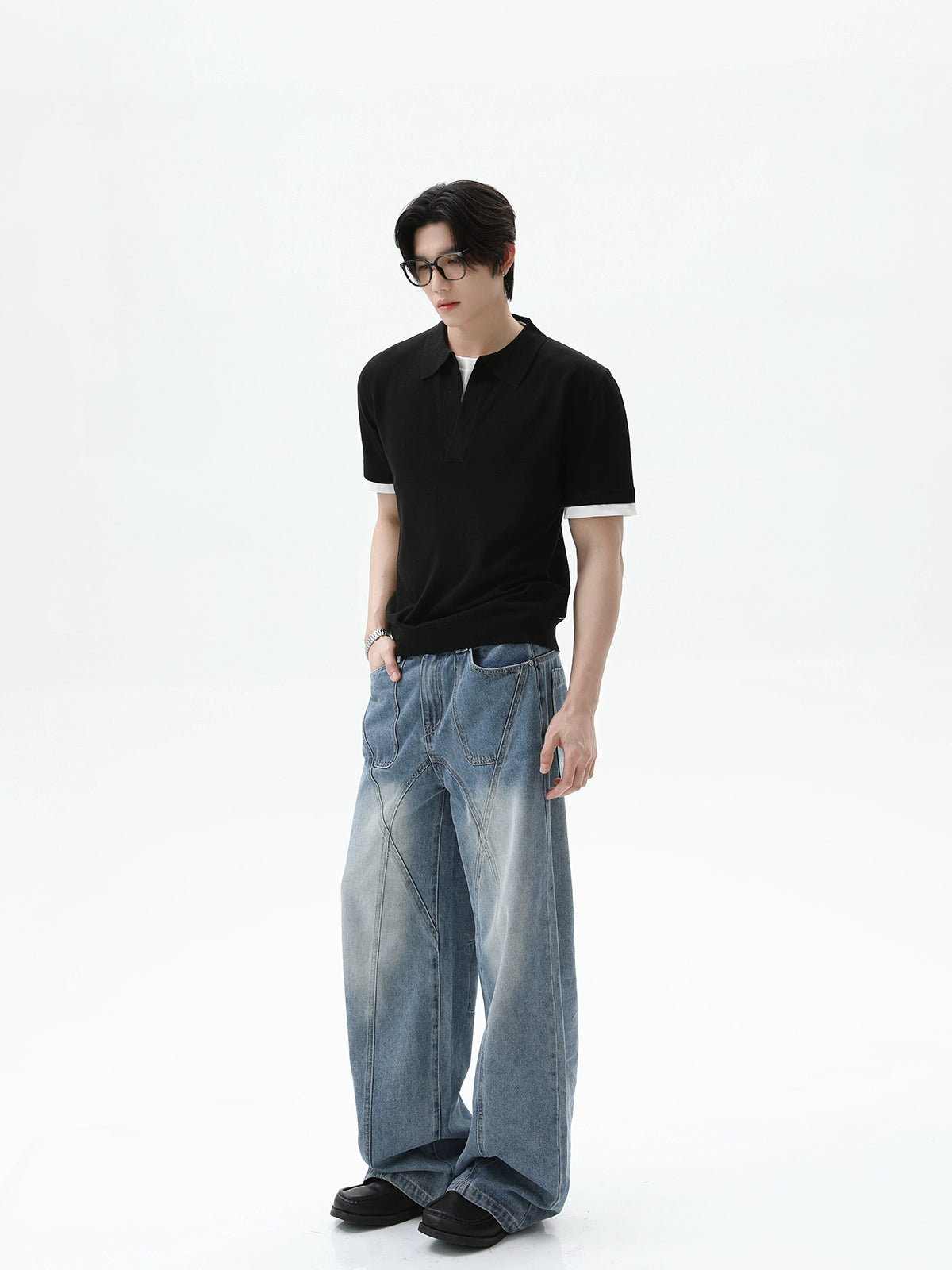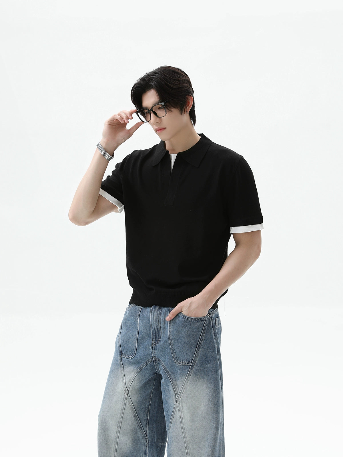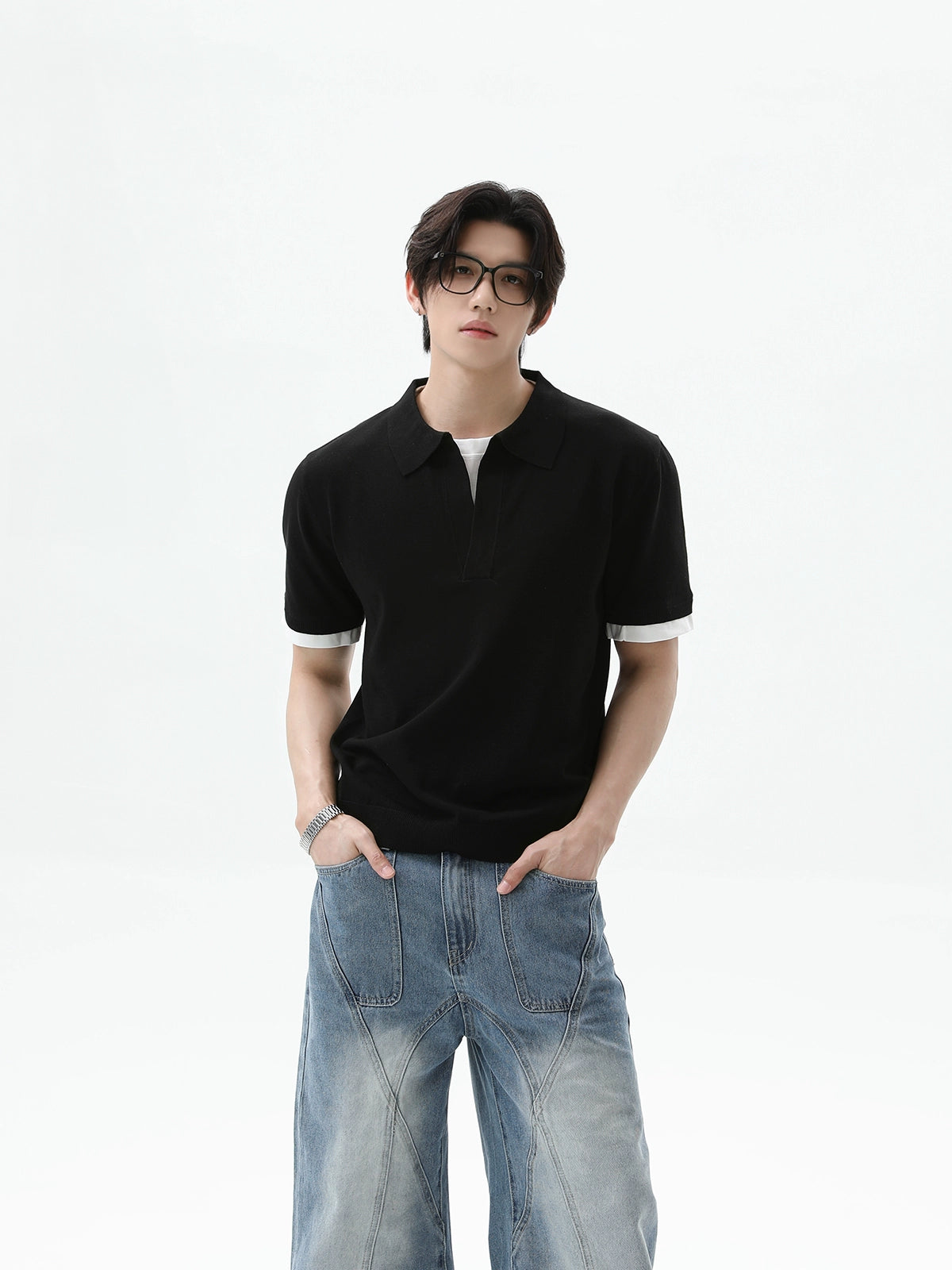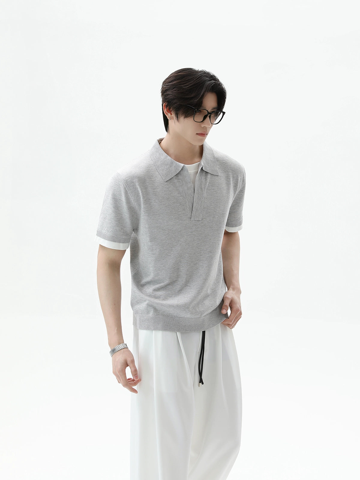 طقم سترة بولو قصيرة الأكمام محبوكة