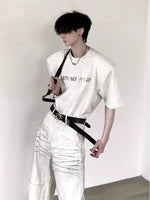بلوزة قصيرة الأكمام مع وسادة كتف بتصميم معدني