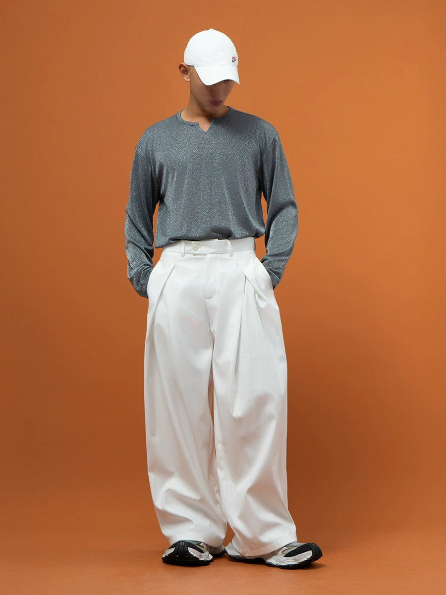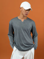 قميص سحب طويل الأكمام بفتحة عنق على شكل حرف V عاكس