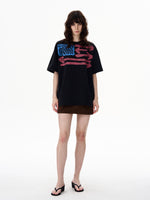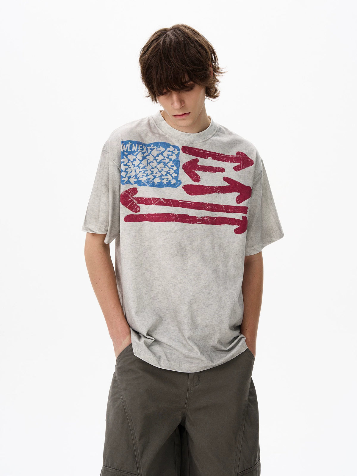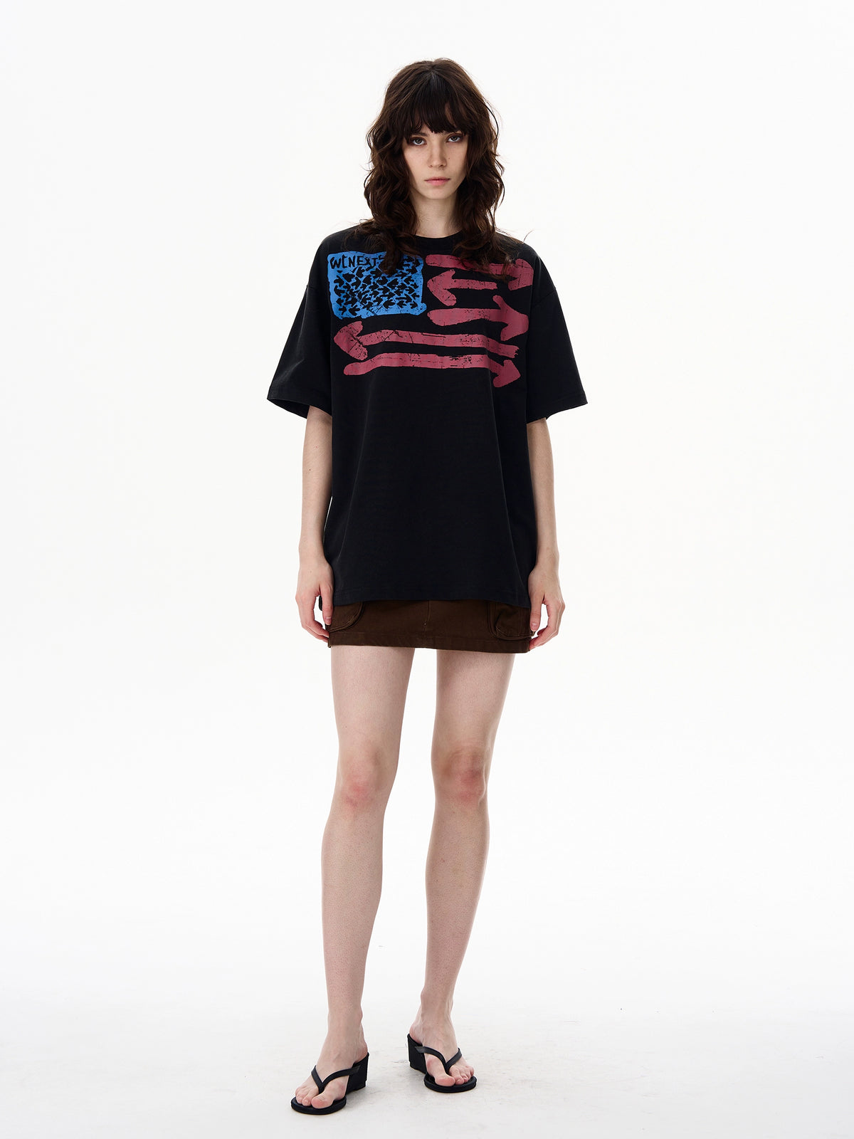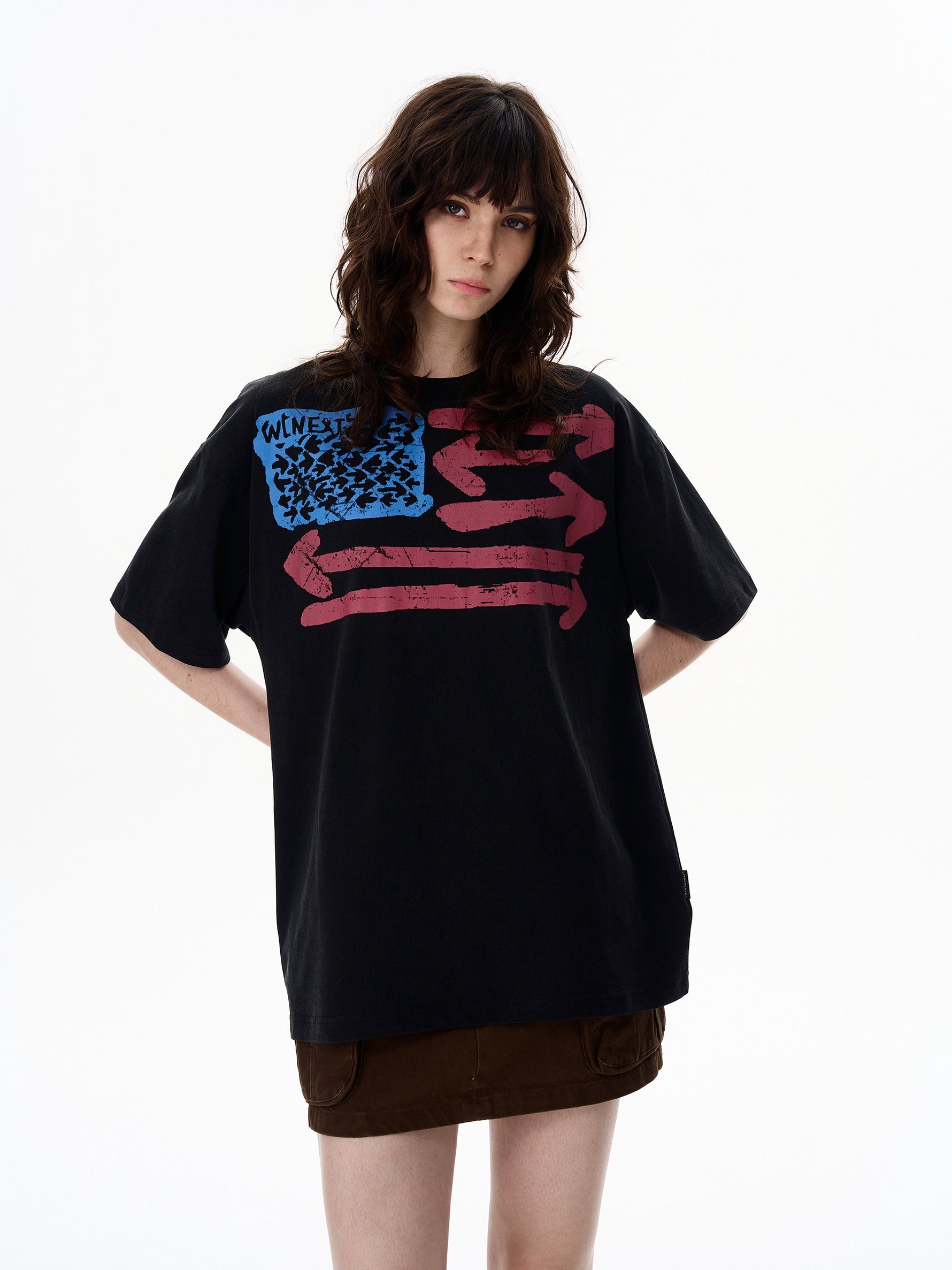 تي شيرت فضفاض برسومات عتيقة متآكلة