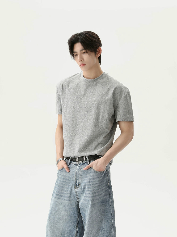 تي شيرت ضيق بأكمام مستقيمة وياقة دائرية