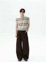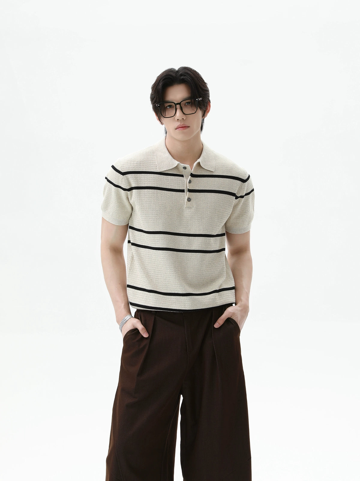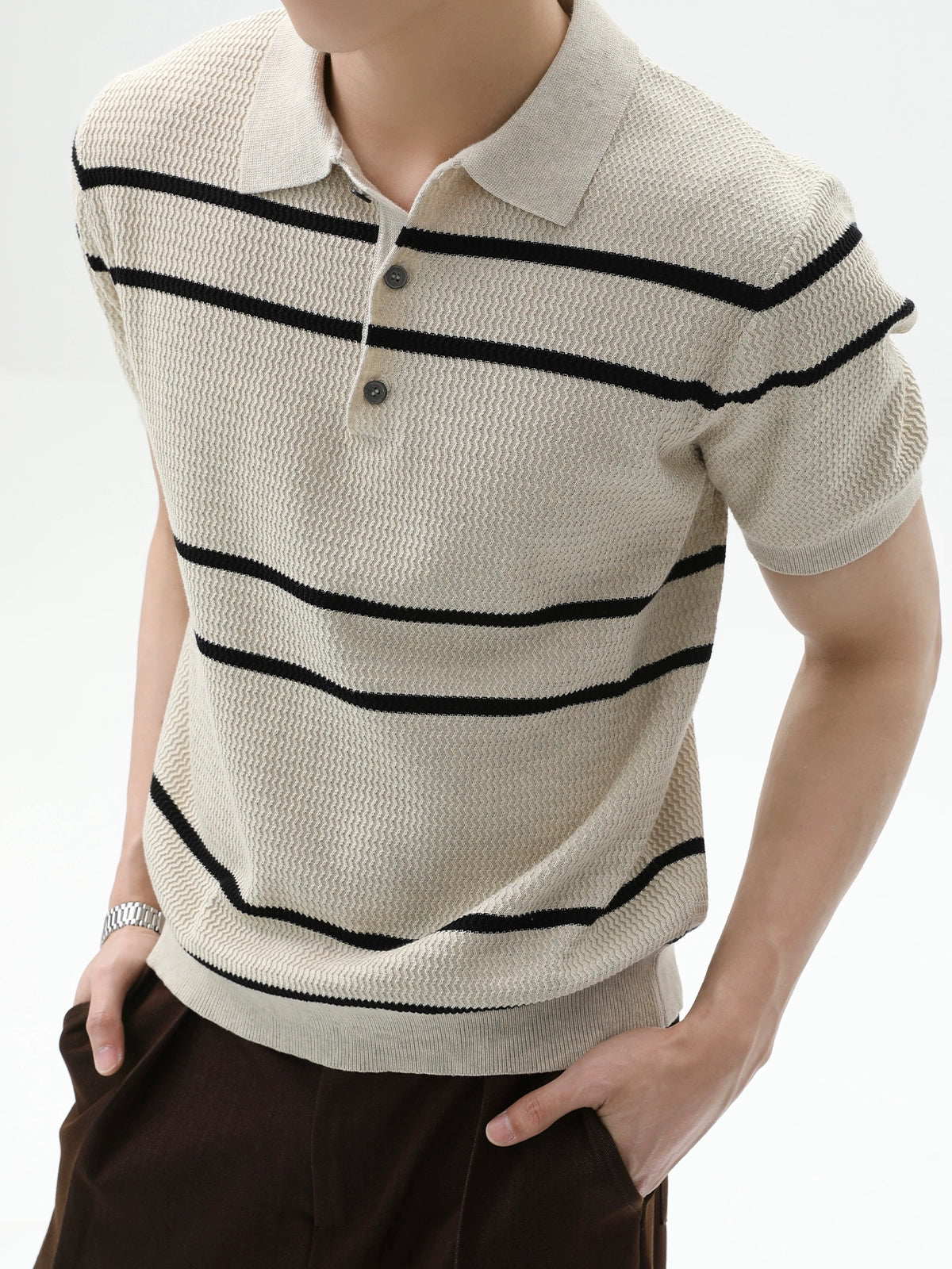 بلوزة بولو قصيرة الأكمام محبوكة مخططة